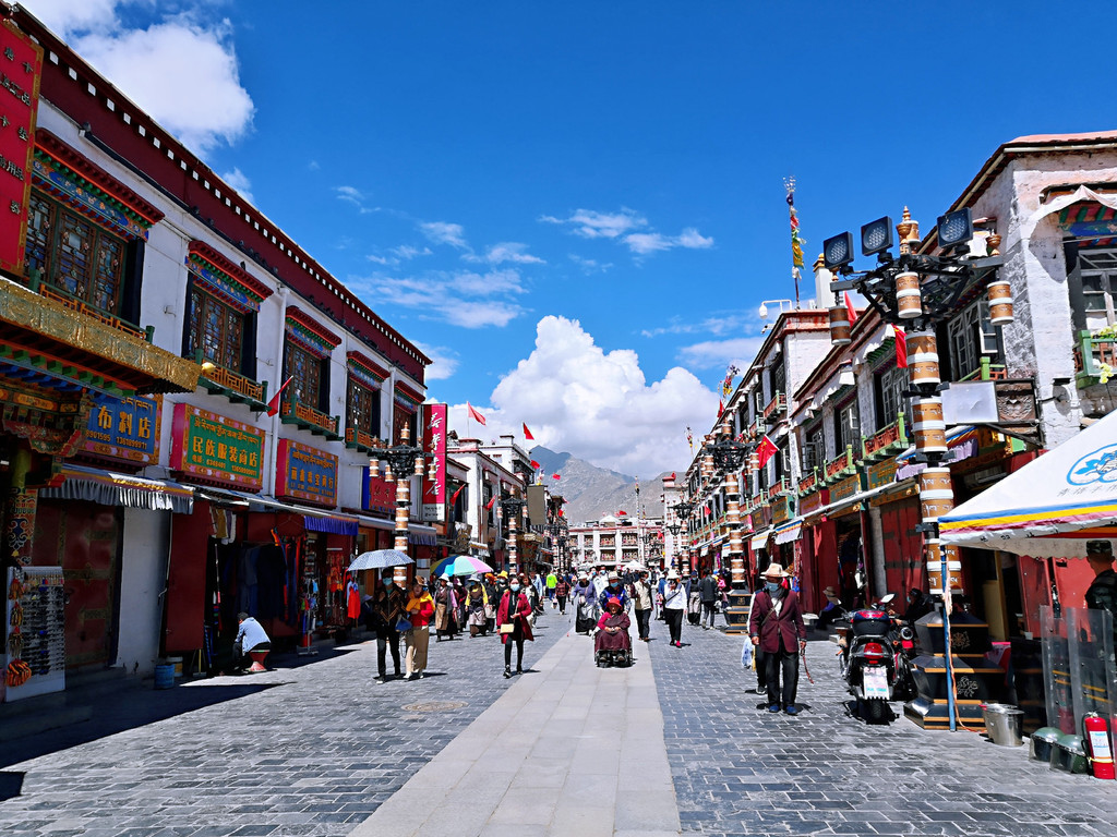 应该是西藏最发达的城市,而布宫门口的北京路是全拉萨最繁华的街道。但即便如此,我们在北京路上仍能看到一些几十年前的那种装修风格的店铺,旧旧的,挂着的店招充满着80年代气息。