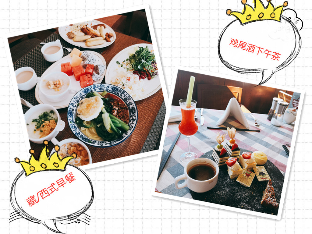 但是幸好,早饭和下午茶都是含在套房的套餐里的。早饭藏式、汉式、西式的都有,好吃是不存在的,吃饱是没问题的,大不了炸酱面来一碗嘛。试了一小份糌粑和酥油茶,100个吃不惯,于是之后外出就餐时候就可以心安理得地省下这笔菜钱。