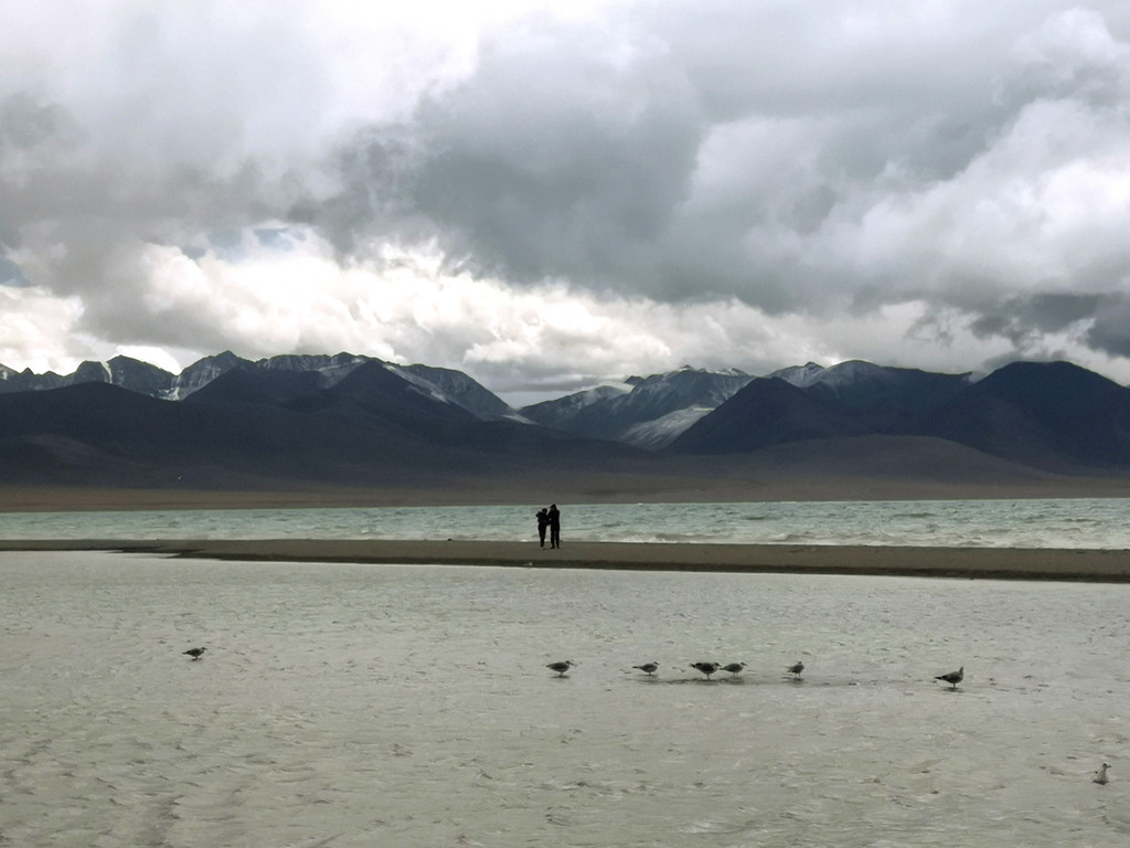 阴天的纳木措狂风呼啸,水鸟在湖里静静发呆,牦牛在岸边淡定稳重,而我们俩……冻到表情失控……
