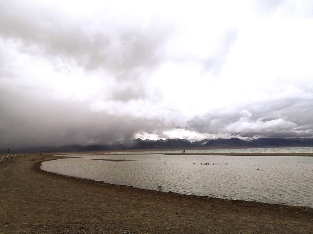 在当地的传说里,纳木措是帝释天的女儿,念青唐古拉的妻子。念青唐古拉山和纳木措不仅是西藏引人注目的神山圣湖,更是生死相依的夫妇。念青唐古拉山因纳木措的衬托而显得更加英俊挺拔,纳木措因为念青唐古拉山的倒映而愈加绮丽动人。这种魔幻传说我反正是理解不了,就随便听听罢了。普通游客如我,就只关心纳木措好不好看,出不出片。不得不说,比起先去到的羊湖,纳木措让我有些失望。漫天乌云压境,本该一碧如洗的纳木措仿佛披上了一层灰色的滤镜。