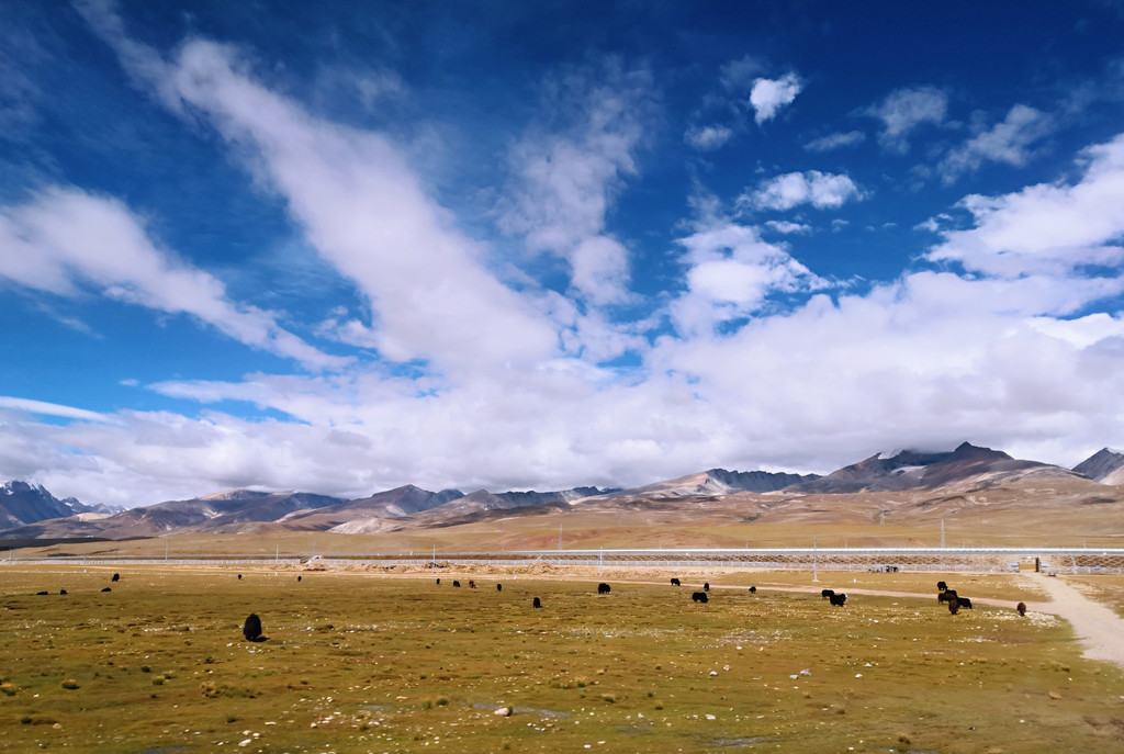 出了拉萨才知西藏的真面目原是“一山见四季”、“十里不同天”。时而阴雨密布,时而阳光明媚,时而彩虹突现,时而云朵奇异。