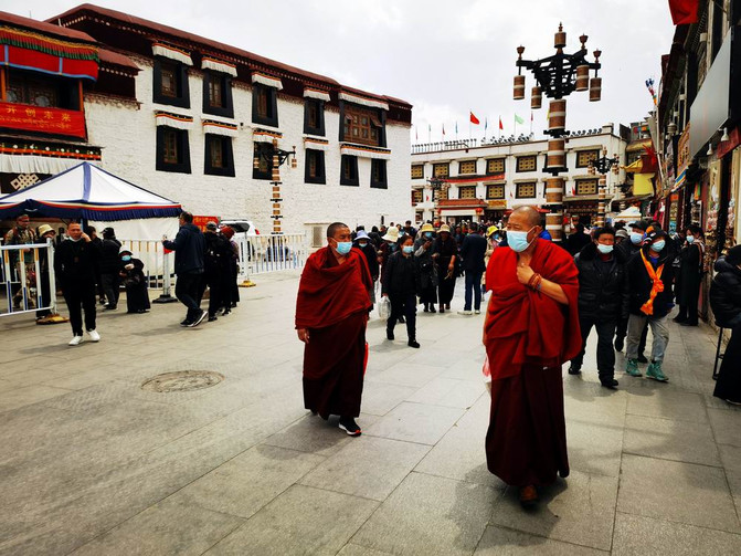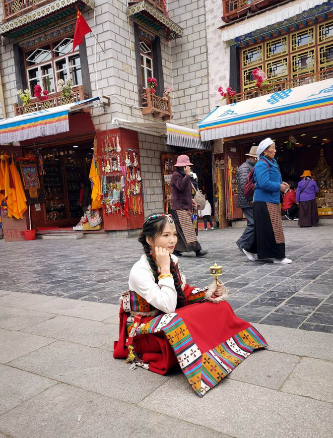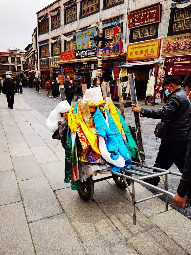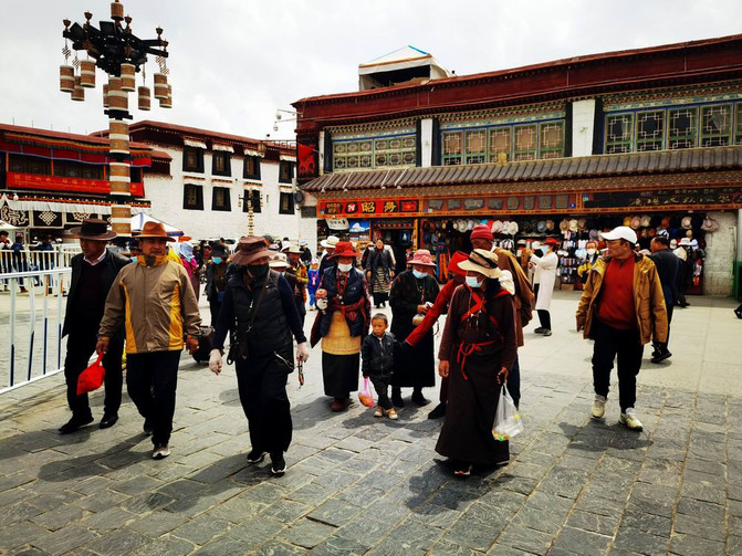 2021年4月上中旬,在去西藏旅游时,曾经游览了拉萨八廓街转经道。照片摄于八郭街转经道。