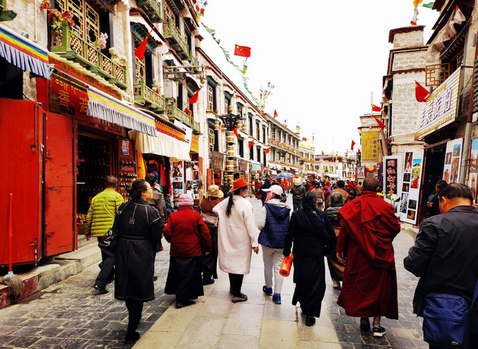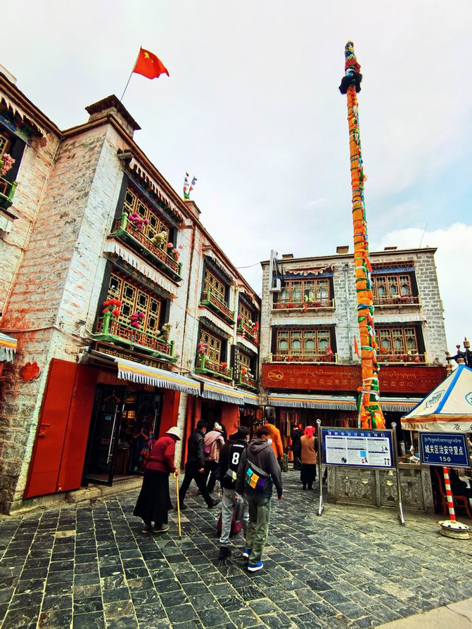 八廓转经道要沿着顺时针步道转经,并且要走在桅杆的左侧。