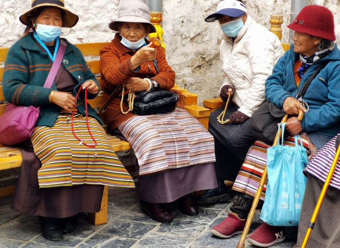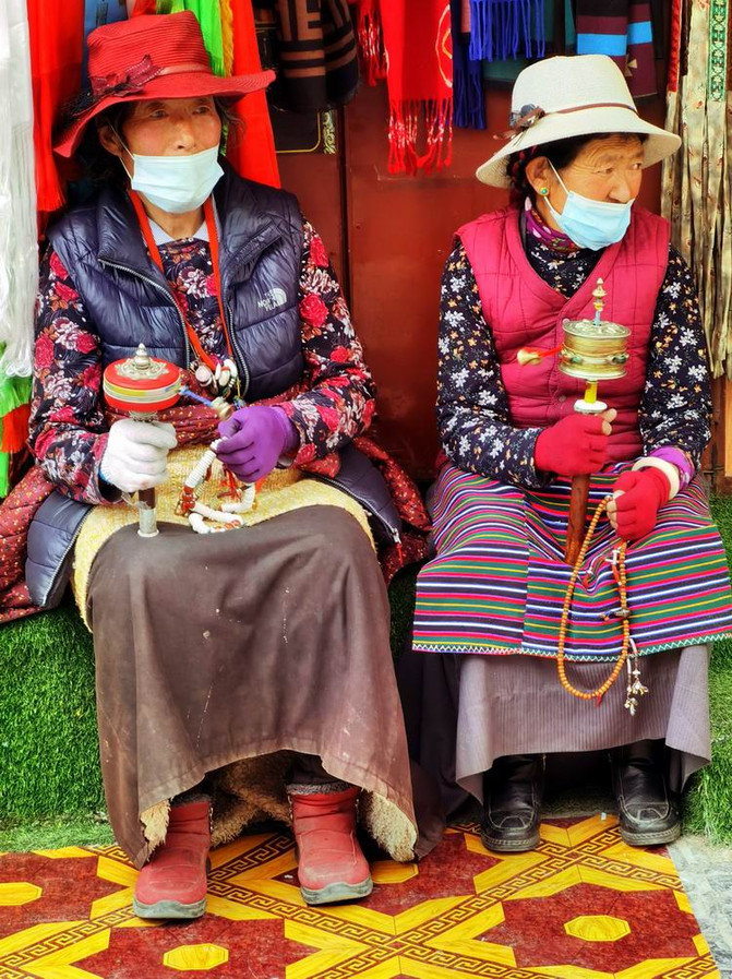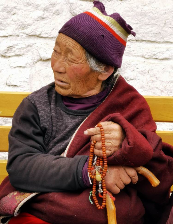 转经念佛,对于他们而言,就是一种生活方式,一种自小就向后辈传承的生活方式。图为八郭街上休息的转经者。