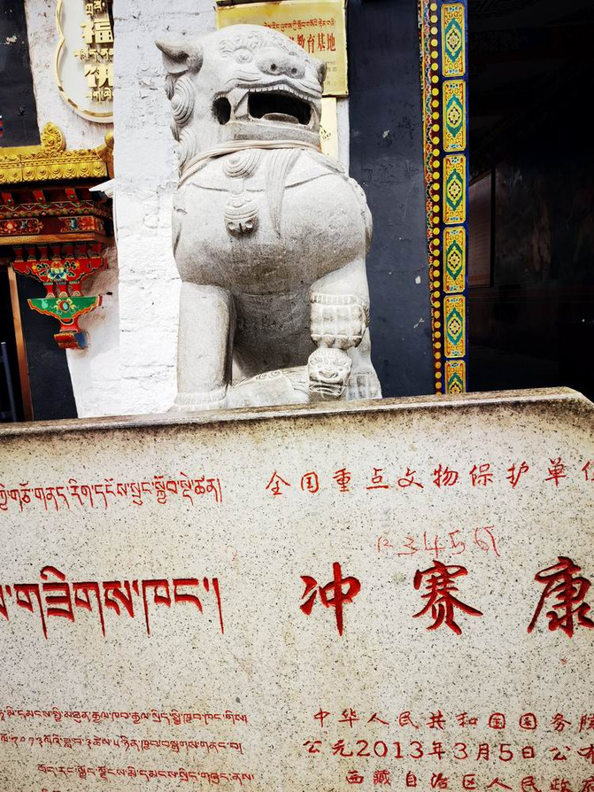 这里还有清政府驻藏大臣衙门留下的石狮子和碑。