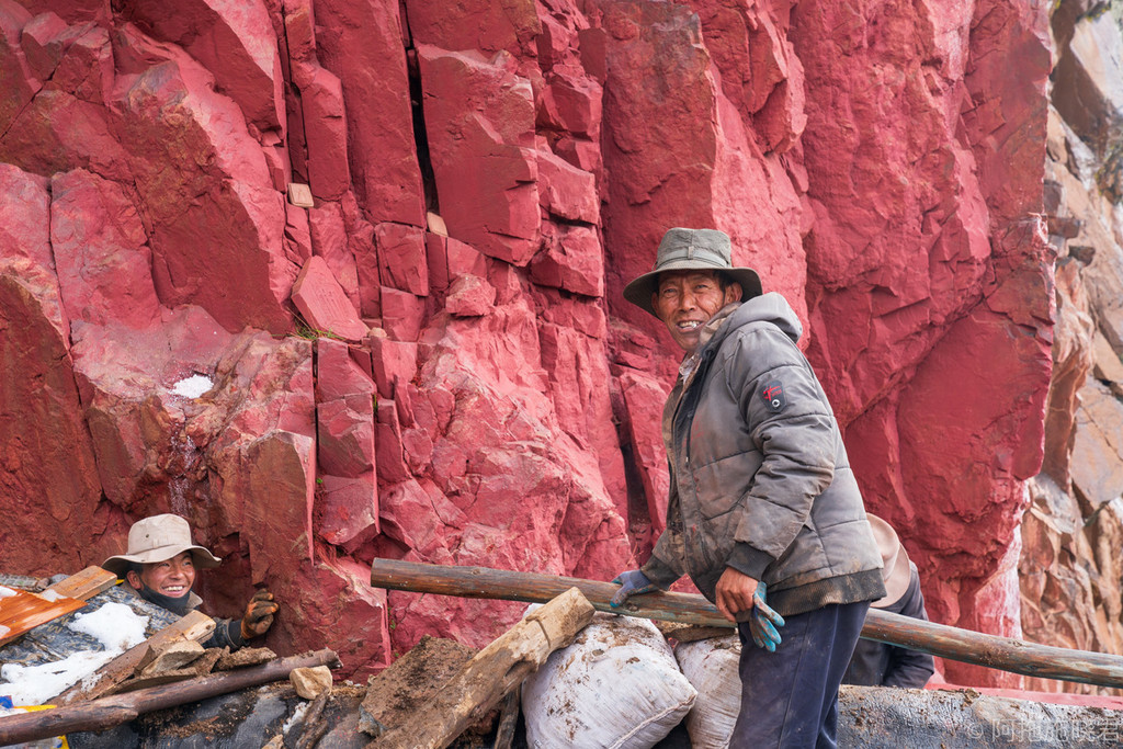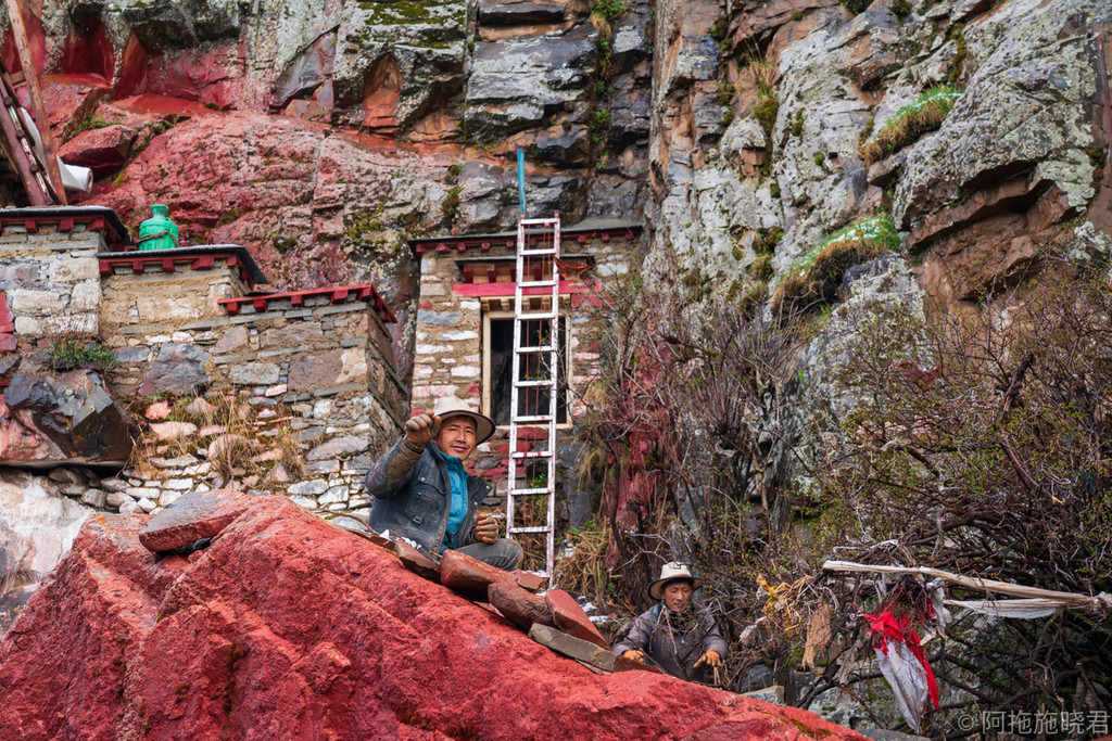 我一路往上爬,不停地遇到当地人一块一块砖头的往山上搬,想来最早以前的斯林寺也是这样一砖一瓦搬上来建起来的。一步一个脚印地爬上来,我还是空手上来都会觉得喘,而他们都还负重,水泥、砖头,实打实地背负在身上。