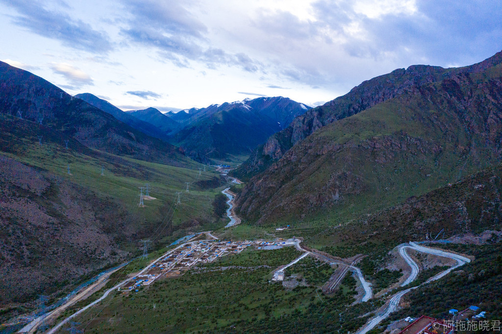 刘位继续往山上爬,而我看着天马上要黑了,我就直接先飞了无人机记录下此刻的美景。当他爬上寺庙,在山上听着诵经的时候,我在山脚下藏族人家喝着酒。