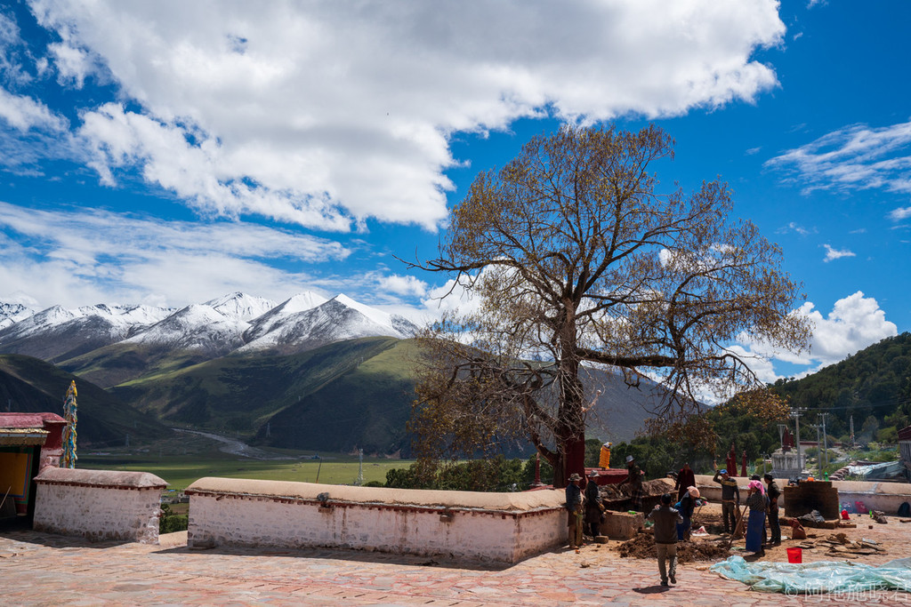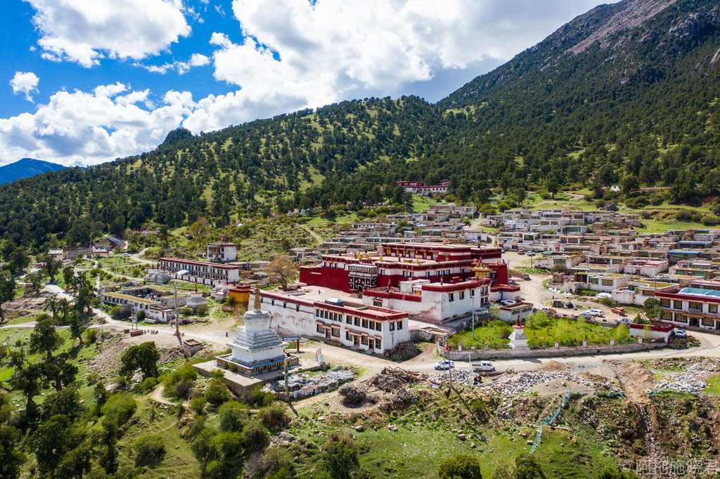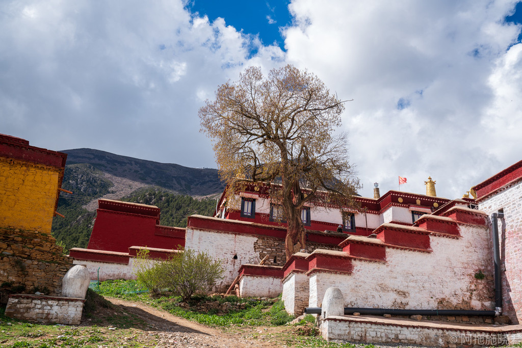 要知道,在 西藏 看到一棵树都难,别说上万棵柏树,当然这句话不适应 西藏 的 江南 —— 林芝 。这么想来,我对热振寺产生了极大的兴趣。在我和刘位出发的第三天,走过峻巴渔村、夏寺和斯林寺之后,翻过路况极烂的恰拉山,沿着水库走了很久很久的县道,又走在一直限速的柏油路上,当我们的眼前出现一片令人惊诧的古 柏林 ,我知道,我们终于抵达了目的地——热振寺。