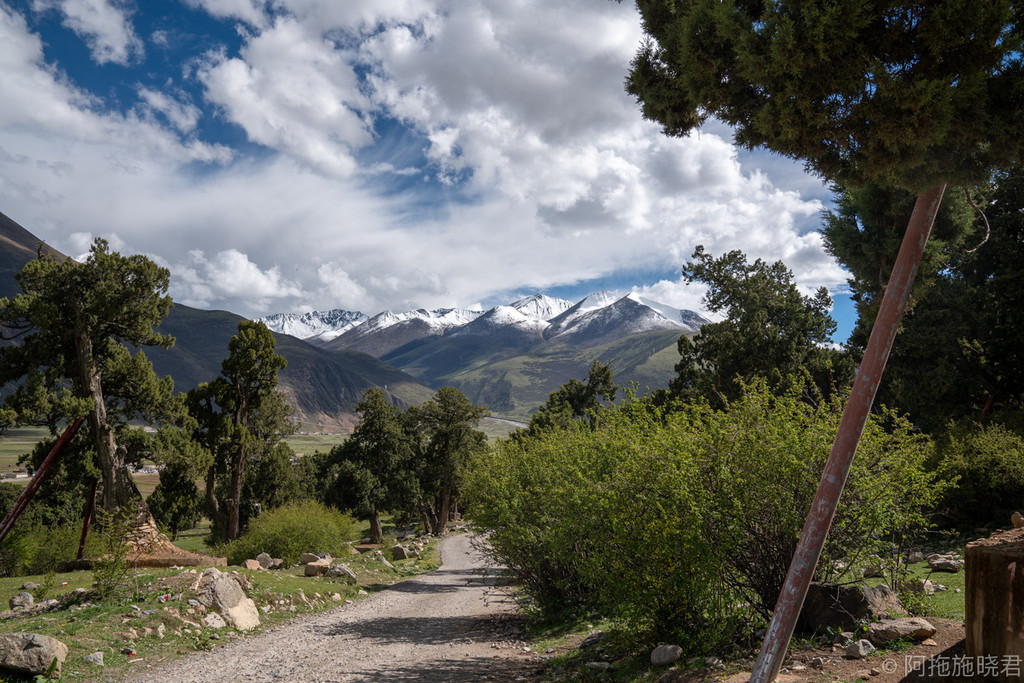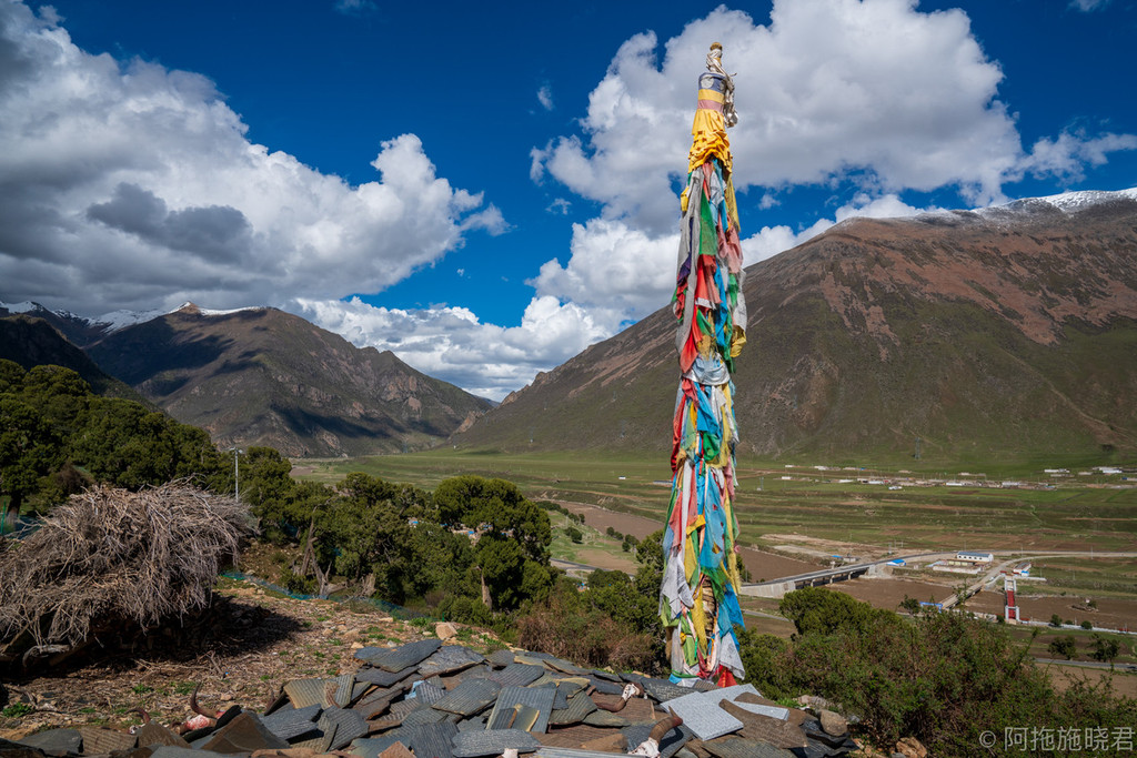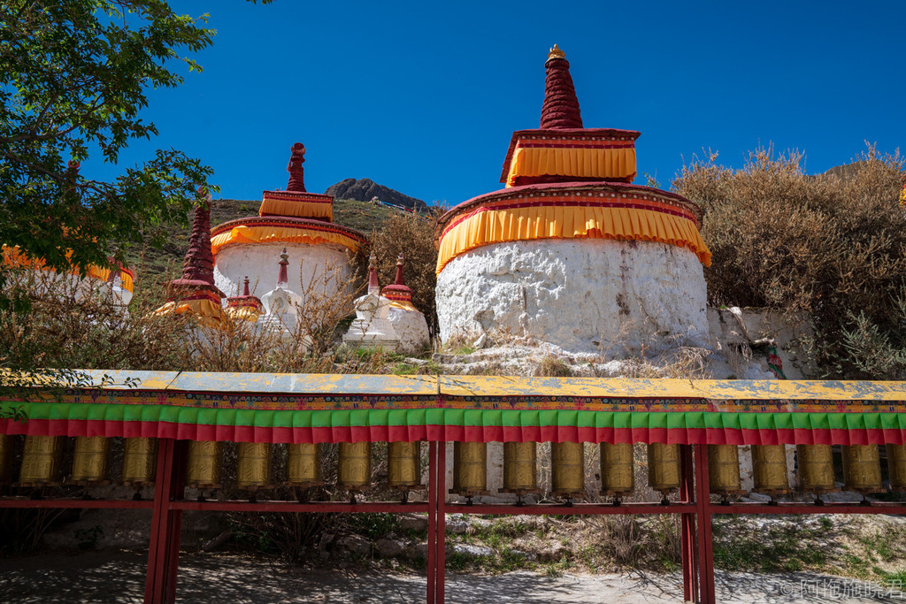 他们散落在寺庙的周围,形态各异,大多都很高,最高的有三十来米。我真的是被它们吸引了,一点都不像在 西藏 ,可远处明明就是还有那么洁白的雪山。