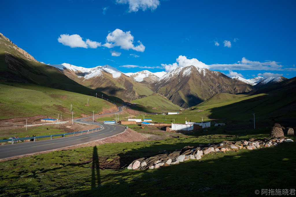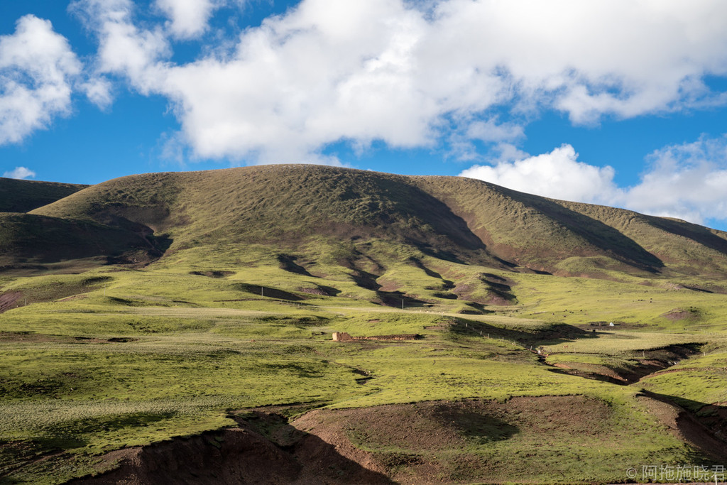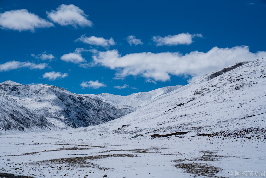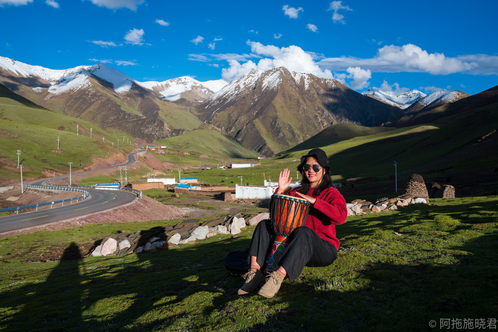 时间还很早,我们看了一下,不如回 当雄 住。我的天,这是一段新修好的路,几乎没有什么车走过,因为刘位是个鼓手,我们便想着说在这蓝天白云雪山下,敲一段鼓。