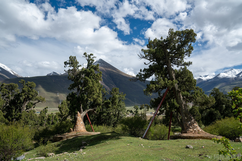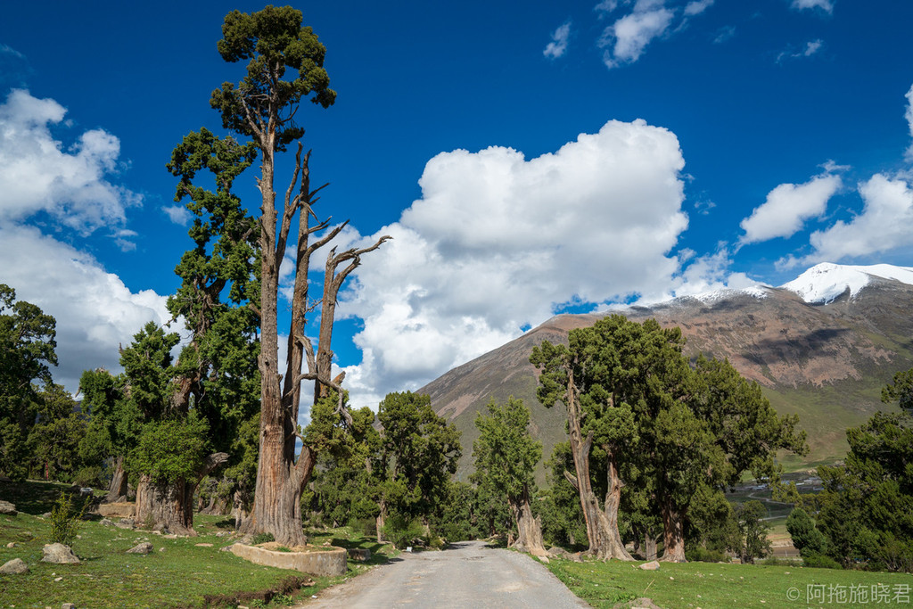 事实上这片千年柏树林有个很酷的名字叫:热振国家森林公园,距离 拉萨 160公里,海拔在4200米,这么高的海拔上居然能有这么多参天 大树 ,太神奇了。