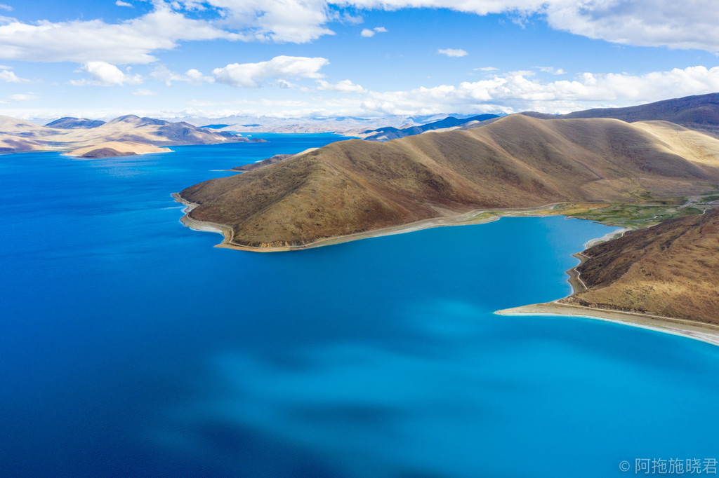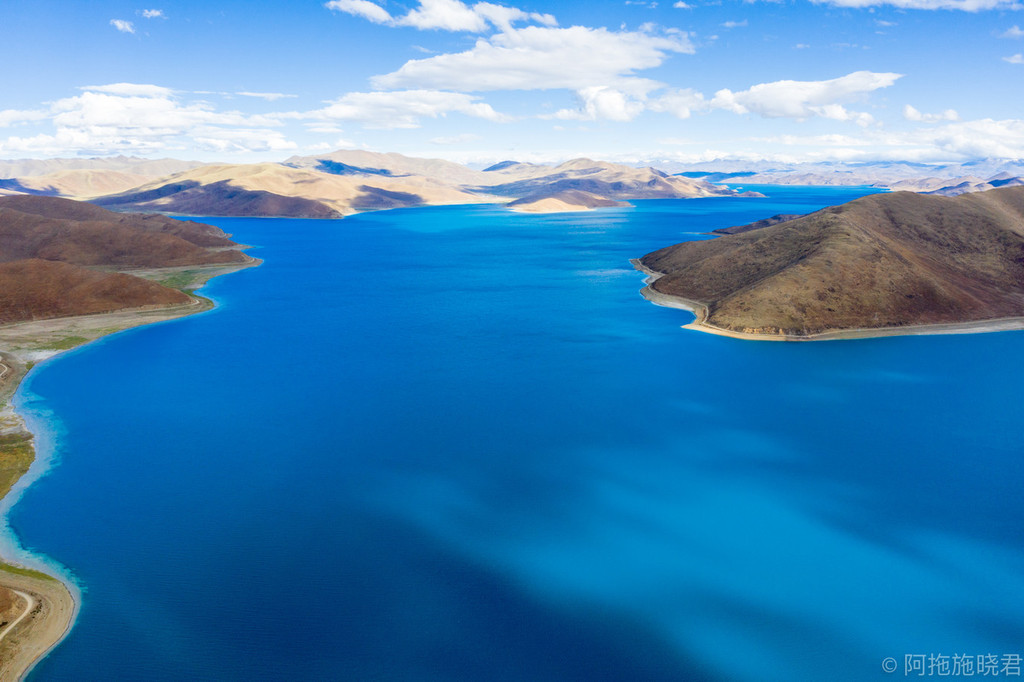 羊湖的整个形状就像是珊瑚枝一样,或者用蝎子来形容会更贴切,正是因为它的湖岸线这样向四周伸展开来,蜿蜒曲折,也给它带来了许多不一样的画面,无论你在哪个角度也没办法看清羊湖的全貌。羊湖在藏语里的意思是“上面的珊瑚湖”,海拔在4500米左右,只要不跑不跳,还是不至于高反。