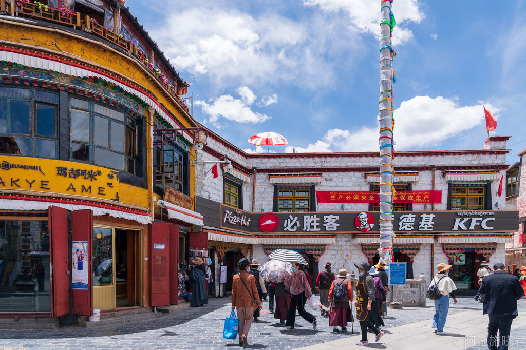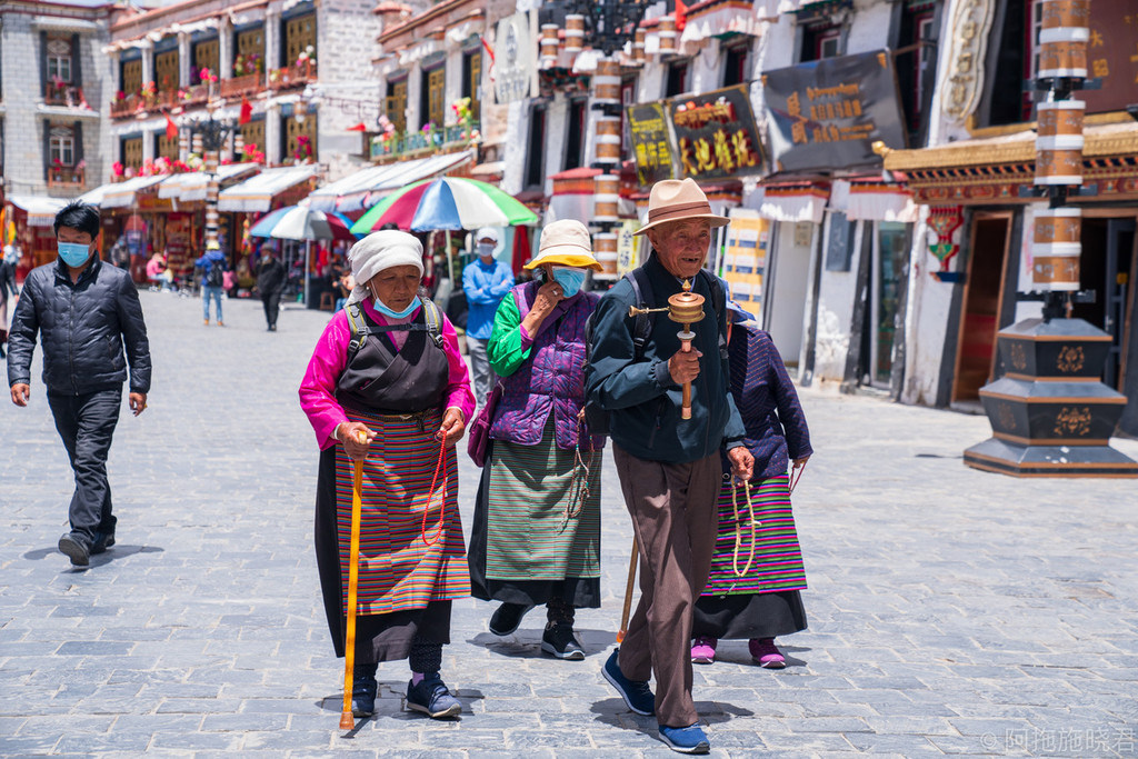 这可是一条千年历史文化名街啊,它是赋予 拉萨 最鲜活的灵魂啊,它怎么可以被沦为旅拍一条街!以往在 拉萨 ,无论是白天还是黑夜,只要来到大昭寺广场,都能看见朝圣者,绕着大昭寺三步一叩一圈又一圈,又或者直面大昭寺,一天好几千个长头就这么磕完了。