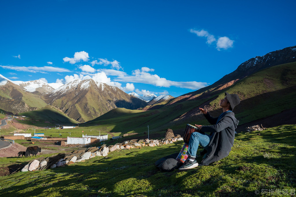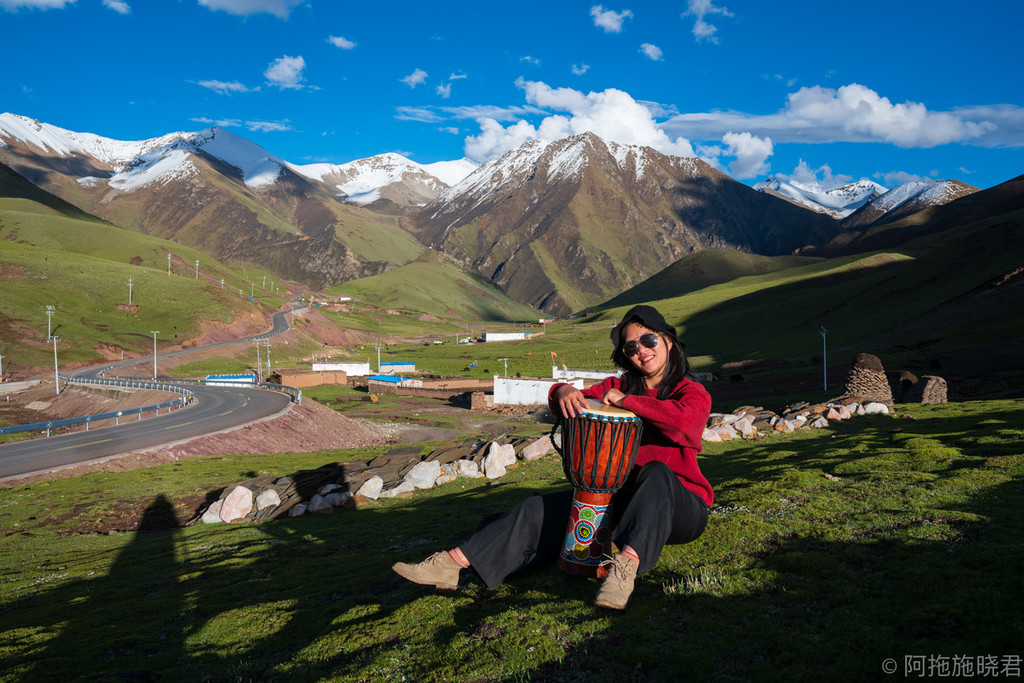 我们就在几户人家的山顶上,远瞰雪山,近有牛羊相伴, 非洲 鼓我是现场学的,竟也有模有样,还是得夸一下老师厉害。