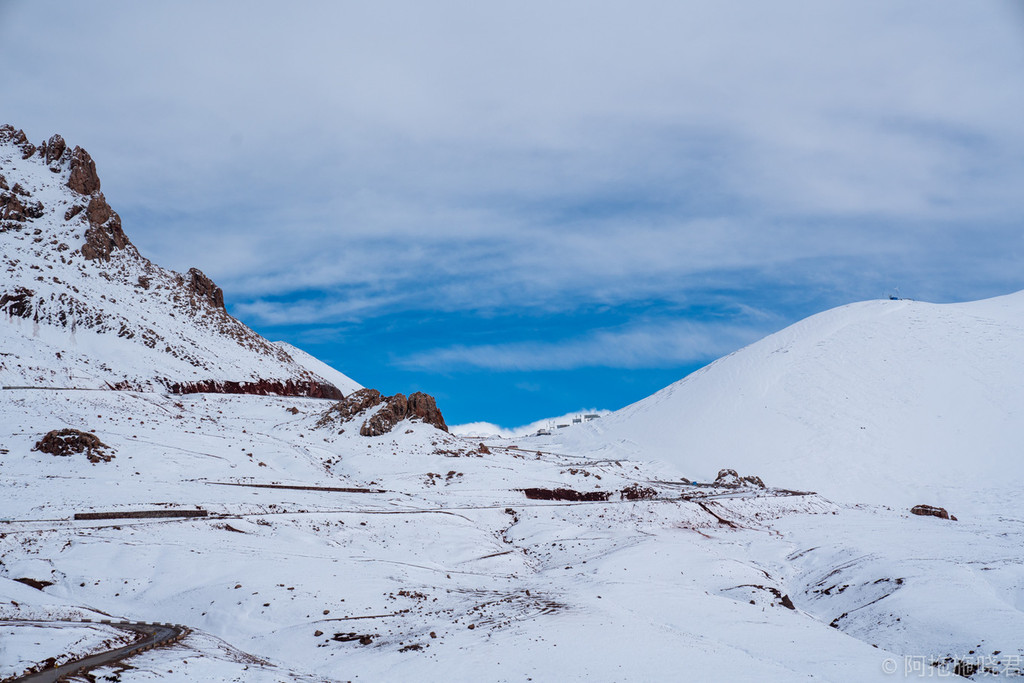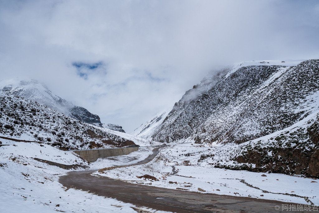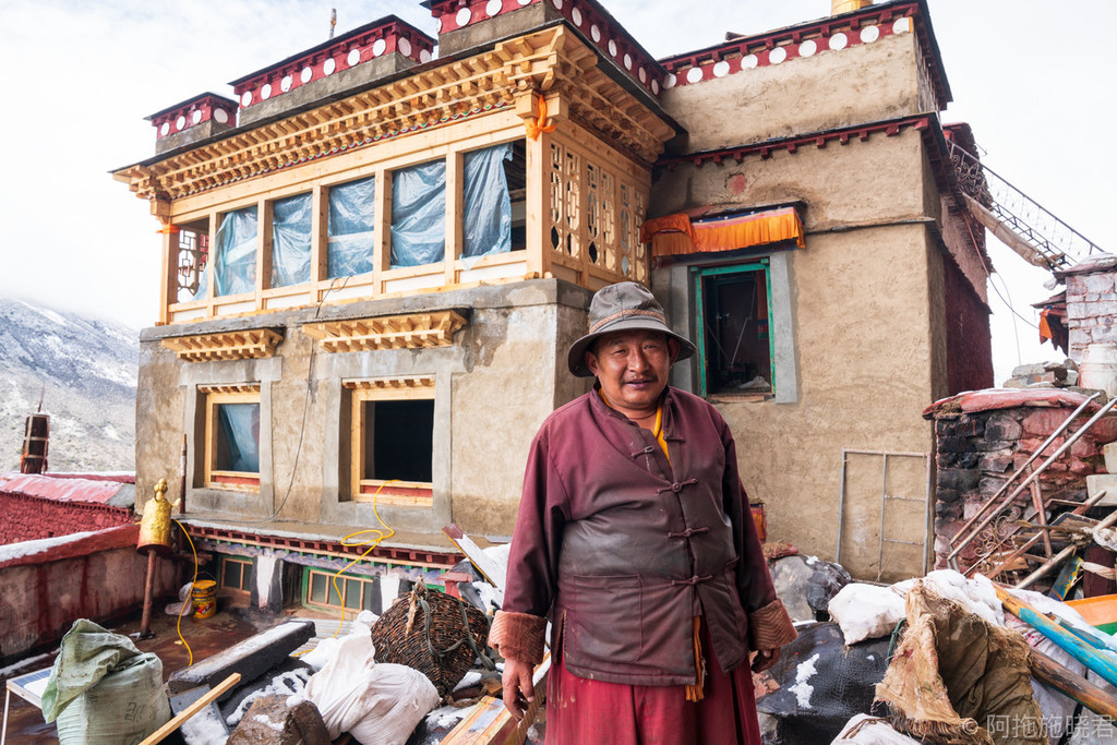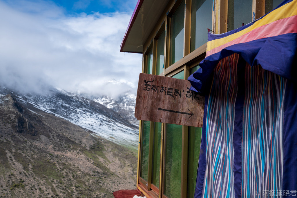 远处的山一夜之间,全白了。爬到寺庙最顶上,我遇到了昨晚一起喝酒吃肉的藏族朋友们,还有一位喇嘛,喇嘛的汉语讲得不错。他跟我说国家拨了一些钱让他们重建寺庙,而且从 拉萨 来这里 盘山 土路也正在修建中,等路好了,我们也可以发展旅游业了。