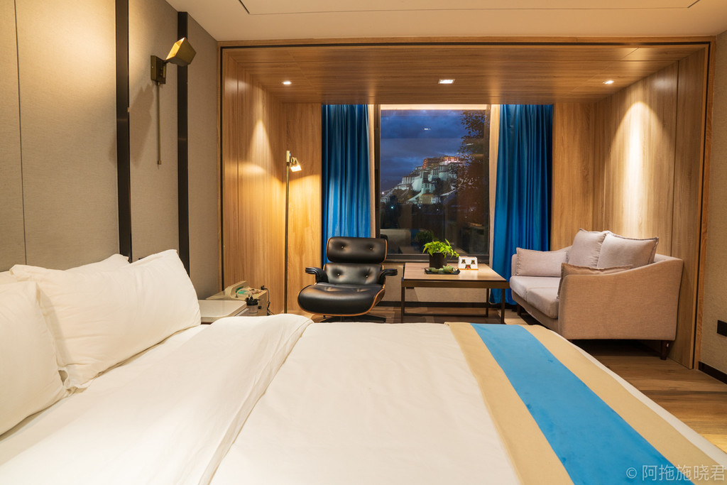 平措康桑的位置肯定是绝无仅有的,直接在房间里看布达拉宫的 日照金山 、看布达拉宫的日转夜,除了平措,怕是没有几家酒店做的到了。这当然是最大的卖点。