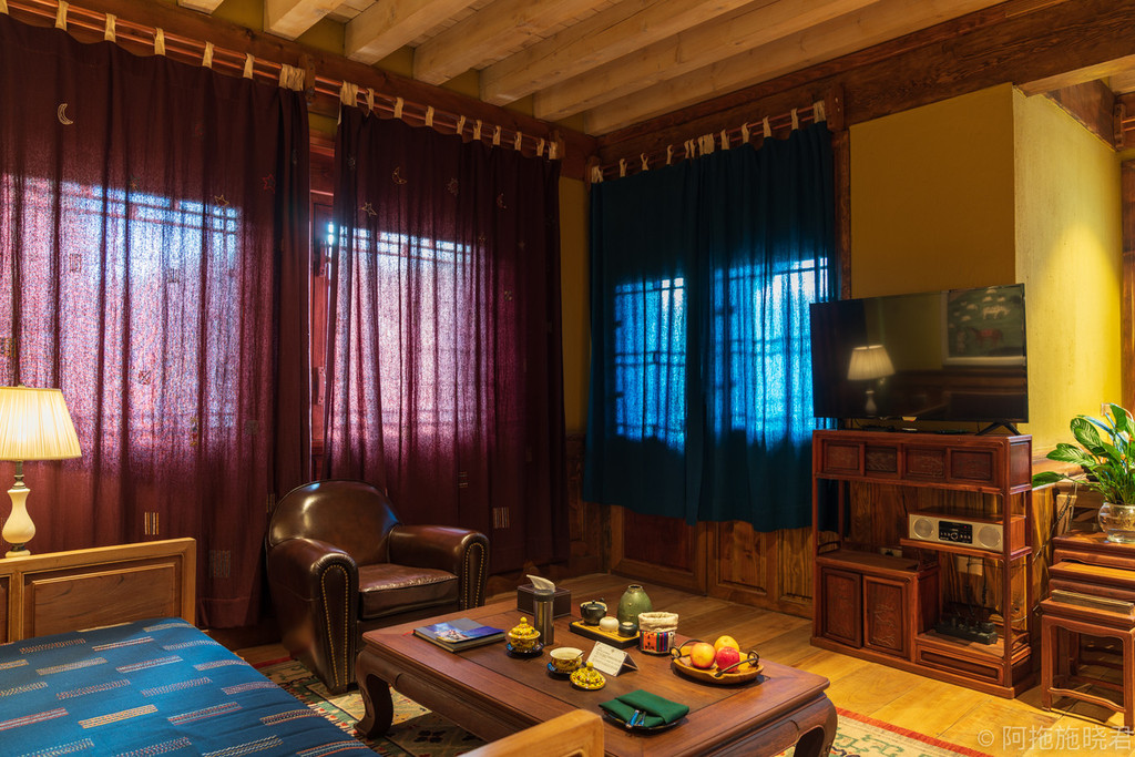 我打了个车来到的松赞,下了车就有服务员帮我提行李,拿身份证办入住期间,更是提供了酥油茶和青稞小饼干,很温馨的服务。楼与楼之间并不远,但还是会用电瓶车接送,毕竟提着行李,走在凹凸不平的石板路上,是有些吃力的。