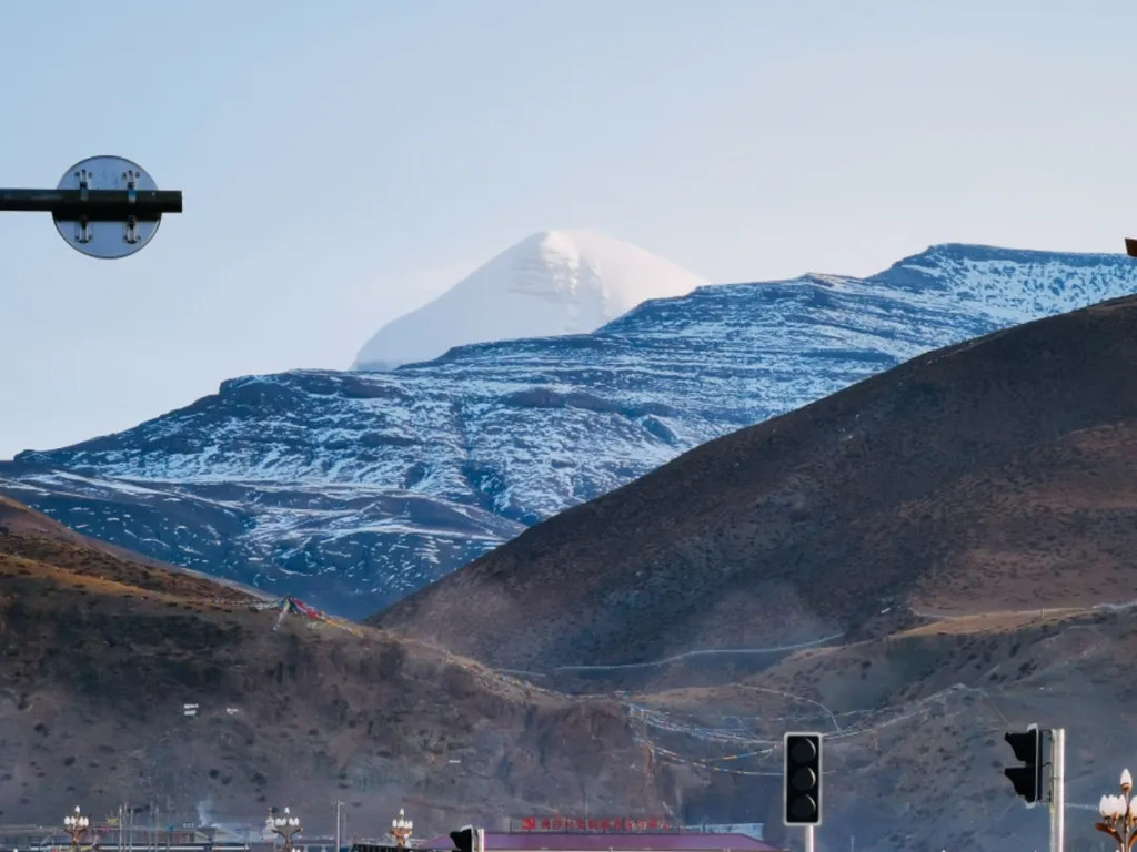 从酒店一出门,左侧一瞥,咦,这不是冈仁波齐么!E小姐惊呼一声,一个健步跳下车去给神山来了个近距离特写,车门也不带,我就这么堵在酒店正门口。