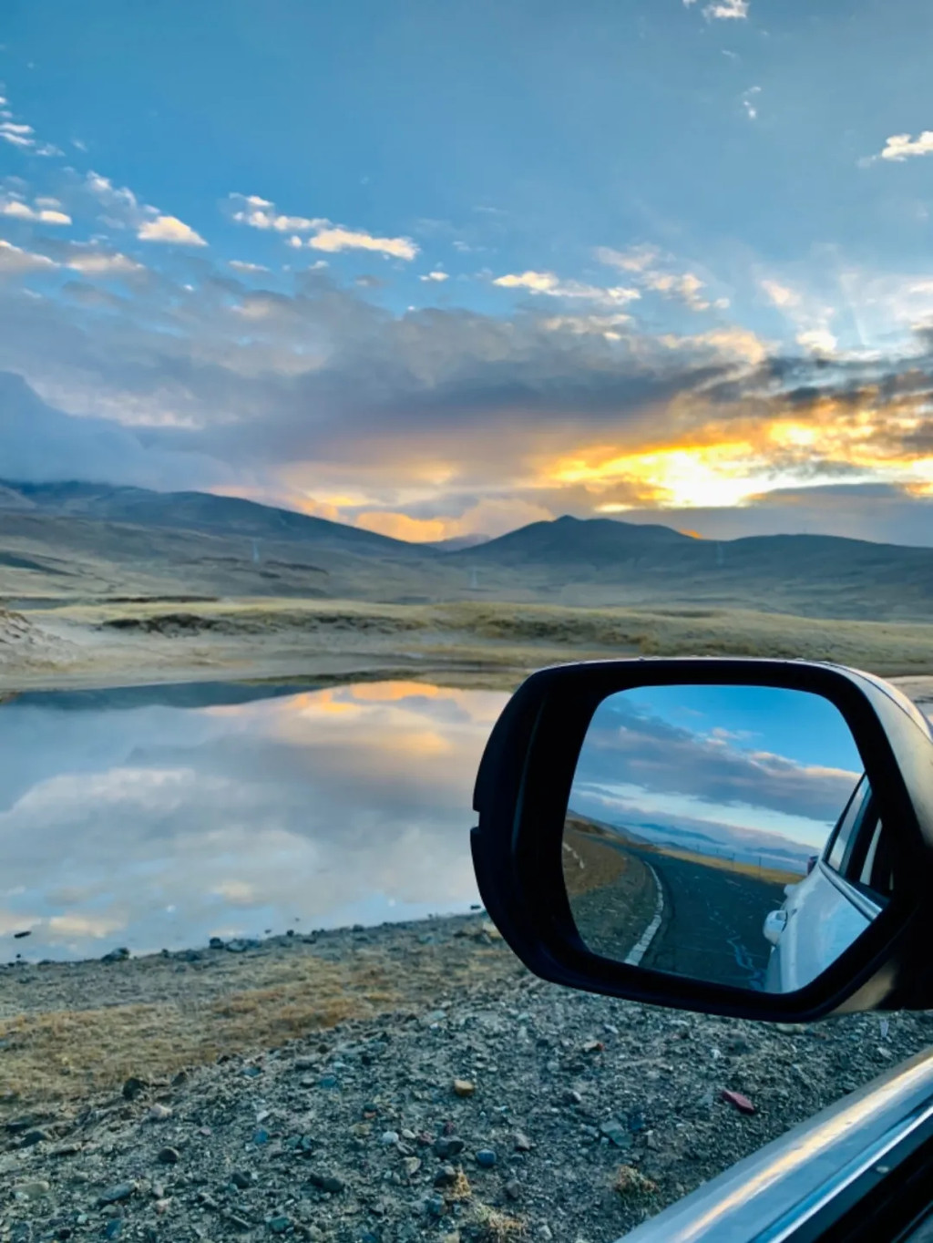 今天要开9个小时的山路,所以起了个大早,7点天还没亮就出发。早起的鸟儿有奖励,一路向东追日的方向,摸黑在山里盘旋,看到了日出美景。然后又经历了各种沙漠,冰雪,丹霞地貌,顶着大太阳和立体云还下着大雪。这神奇的天气与地貌。