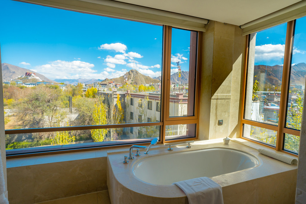 不管是在房间、还是浴室、阳台,都能清晰的看见布达拉宫。
