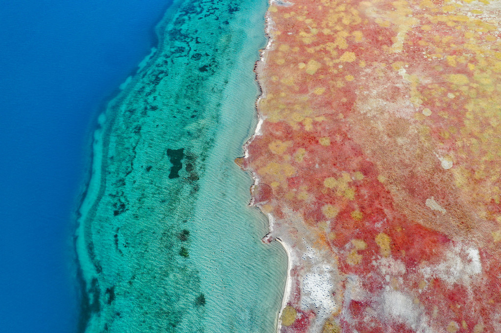 羊湖的美来自不同的色彩,路过一片红草滩,再次震撼了我们的眼睛。