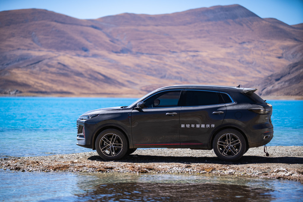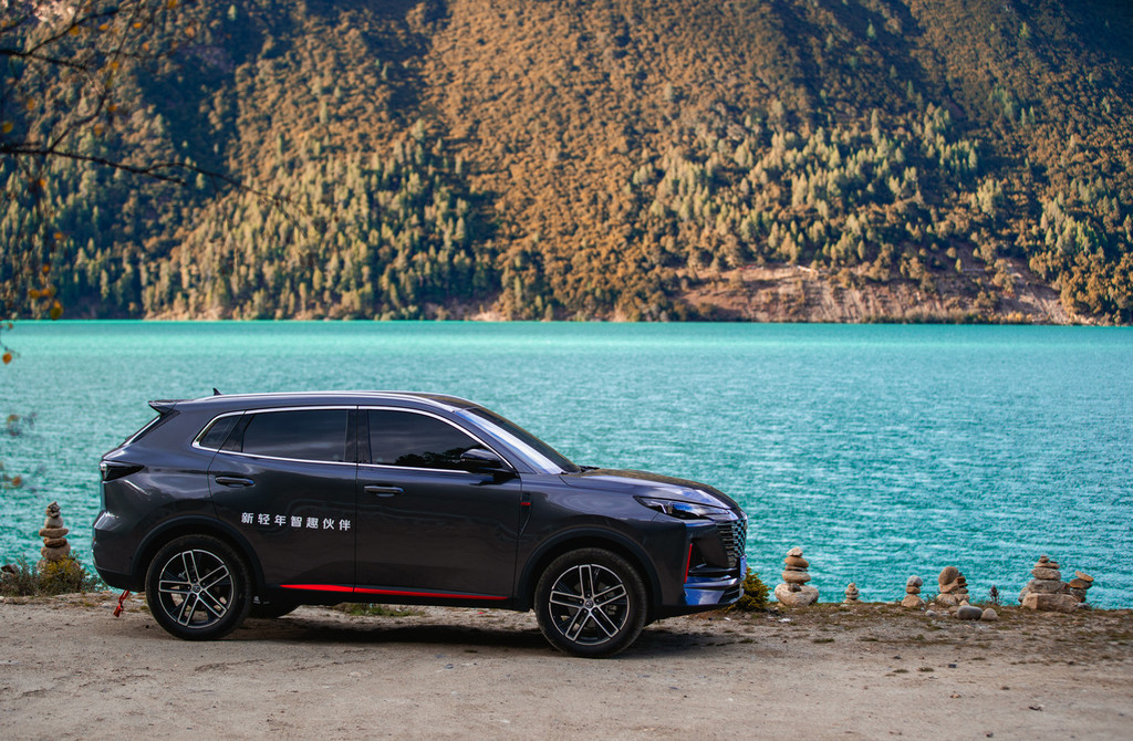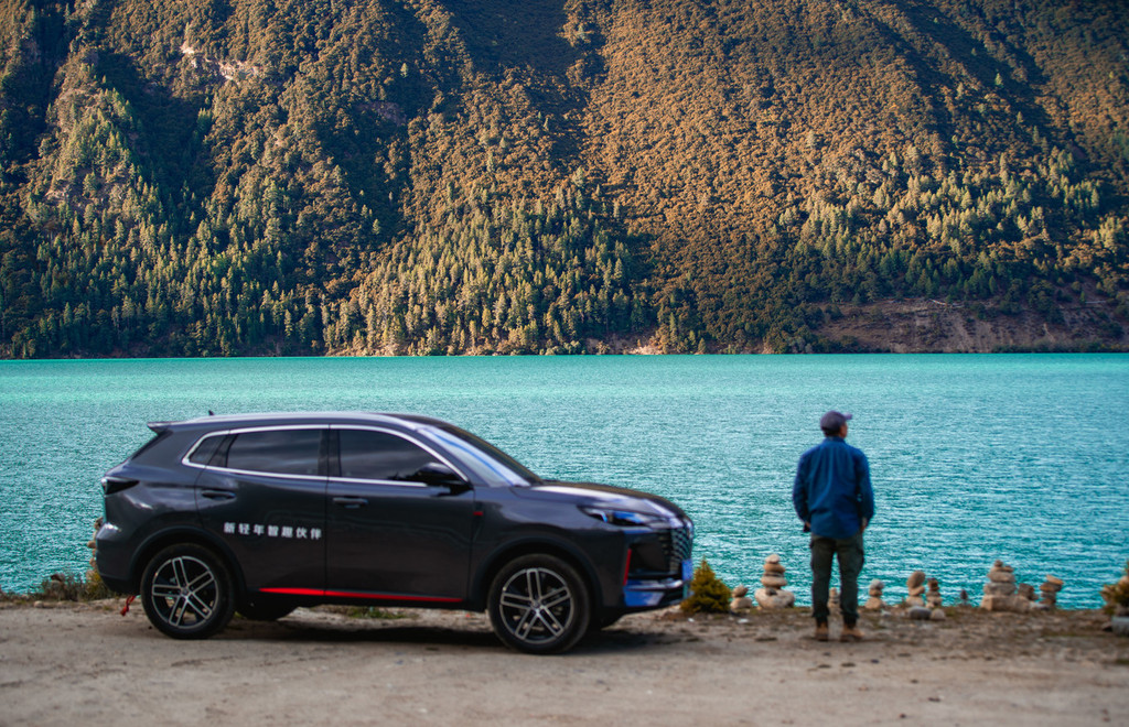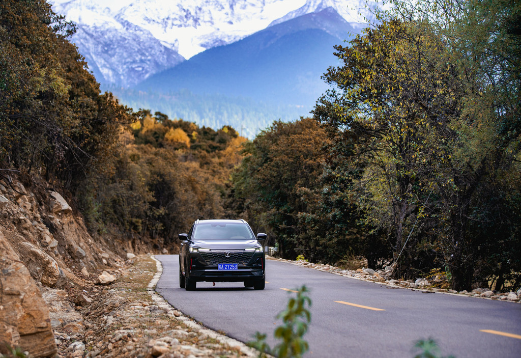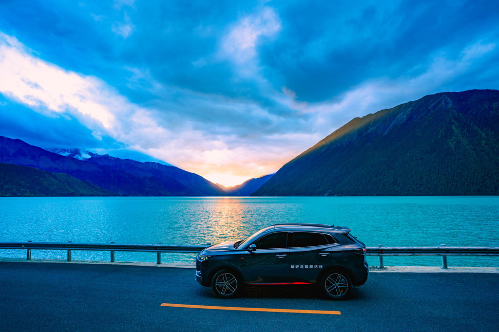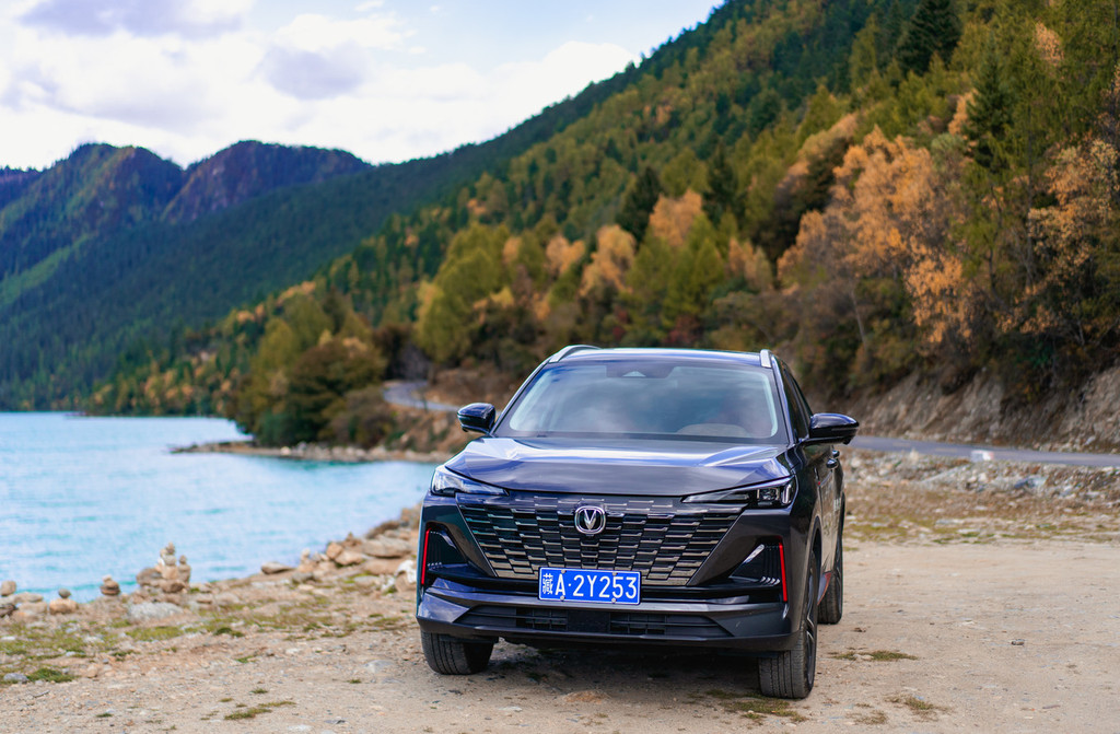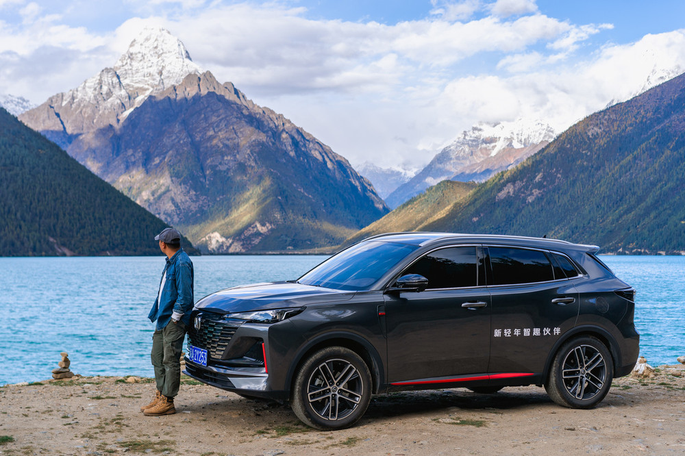 雪山湖泊和我的超高颜值CS55PLUS超连续车身型面。