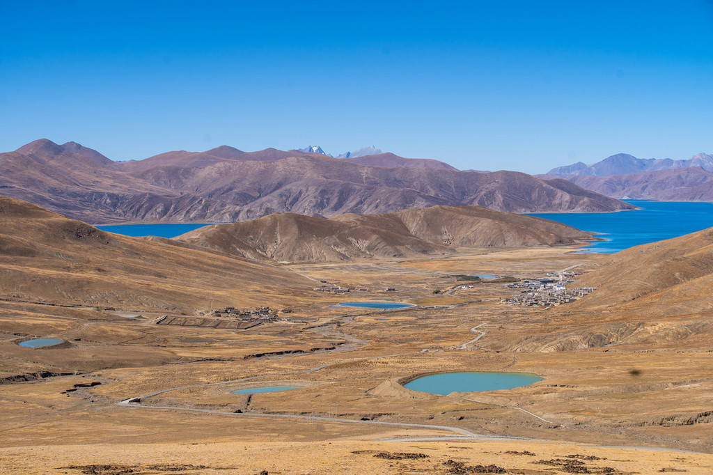 翻越海拔4500多米的岗 巴拉 山口,有个观景台,可以俯瞰羊卓雍错,这里是最常规的视角。