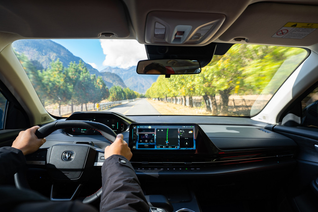 我这次在 西藏 驾驶的是长安第二代CS55PLUS,超连续分体式双屏设计,悬浮式中控台以及一体式运动座椅,驾驶起来舒适感十足。