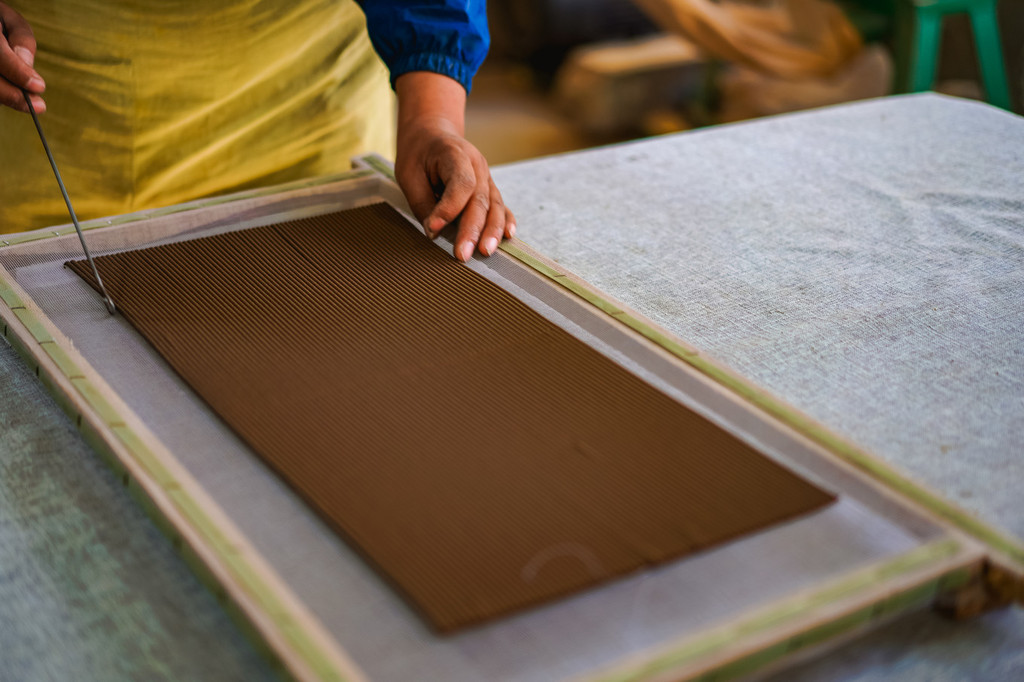 传统的藏香制作技艺采用柏树干、麝香、白檀香等几十种香料为原材料,制作时先把柏树干锯成若干小段,去皮,再用水车磨成柏树木泥,和各种香料一起搓揉,然后把混合各种香料的柏树木泥放入牛角内压挤成型,再经过两到三天的晾晒,即制成藏香。