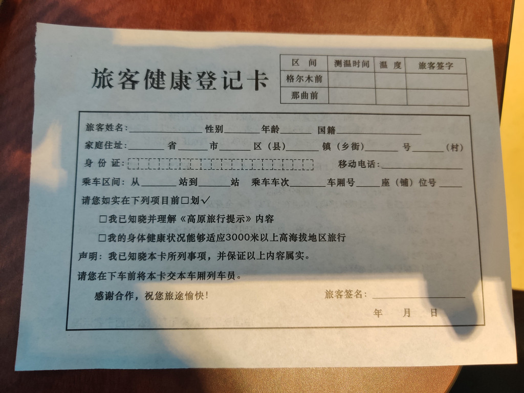 还要在列车上填写登记卡,所以,最好带支笔。