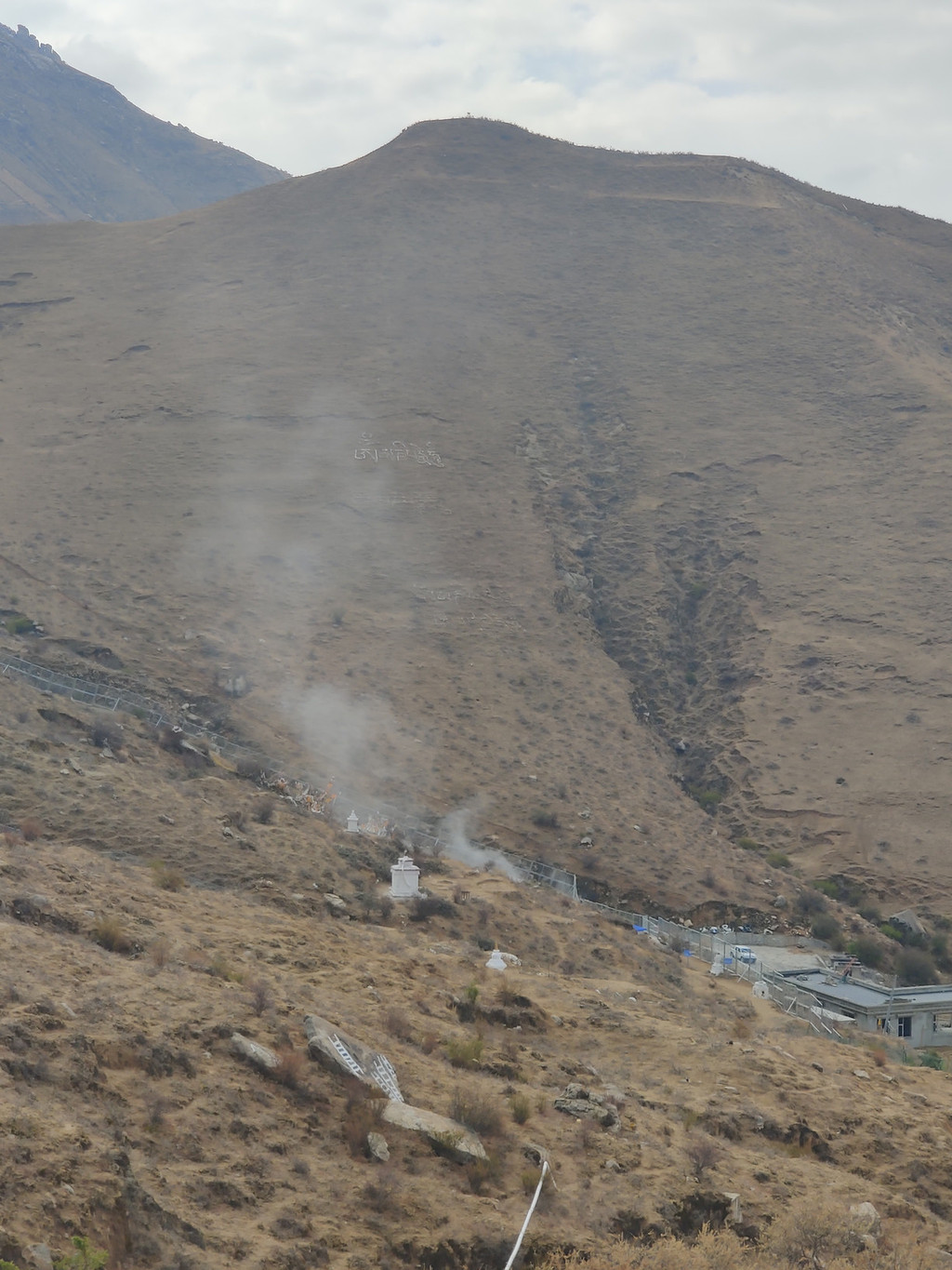 帕邦喀后面还有天葬台,真心说一下,不能去,没有现实途径,也最好不要去,这个白烟,就是在举行天葬仪式: