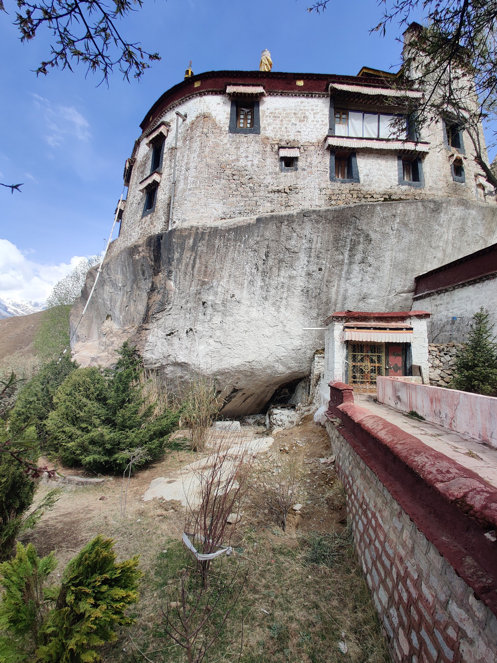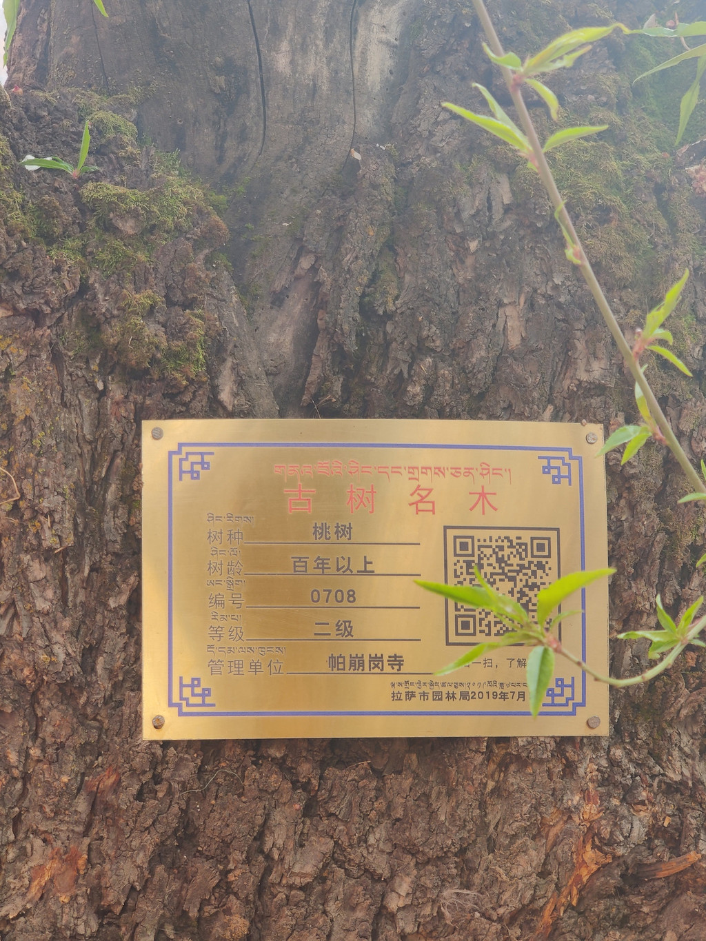 抵达拉萨当天,哪儿都没去,就在客栈里睡觉,我的高原反应就是轻微的头疼,睡到晚上8点多,头疼情况基本没有了。第二天,按照计划去了藏文发源地帕邦喀寺,打车10元到寺庙门口,进寺庙不要钱。寺庙内有浓浓的文化气息,古桃树还在开花: