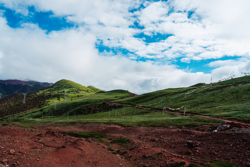 拉乌山是一个地势平坦的垭口,如果不注意的话你会飞驰而过。蓝蓝的天,团团的云,还有黄油油的草甸.……一切就像一首舒缓的歌。