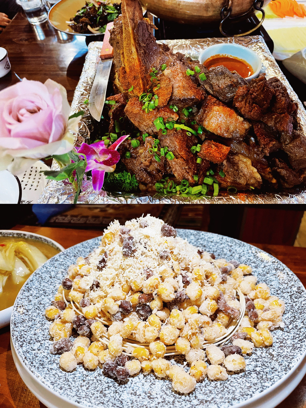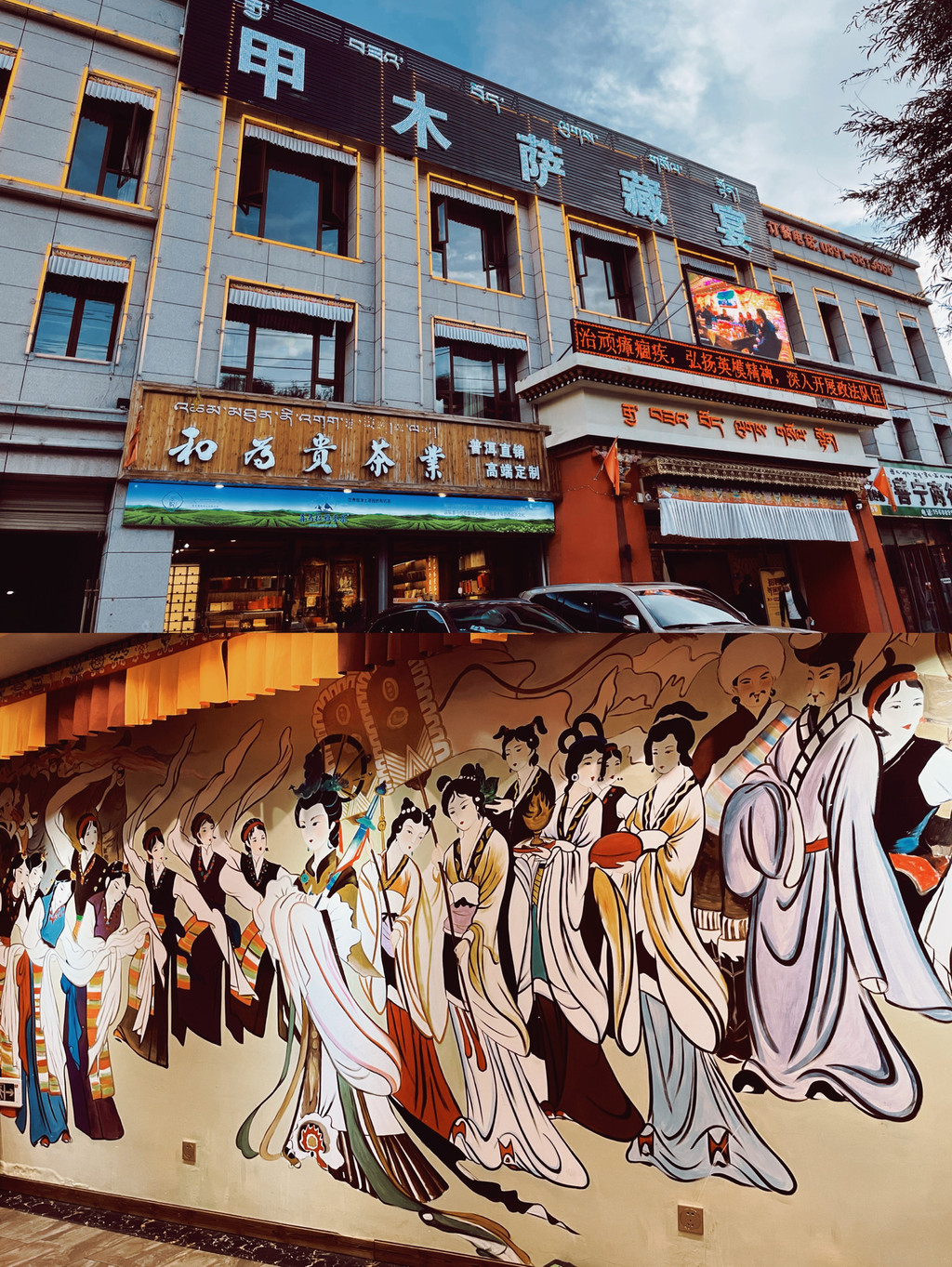 夜晚,是热情而洋溢的藏餐,选择在甲木萨藏宴吃,进入餐厅内即可以看到墙壁上文成公主与松赞干布的画像,室内装饰是藏式的风格,餐厅除了美食,除了几种藏餐必备的肉食,这次还有藏氏火锅,每一道菜都能感受到真挚的热情。吃饭的时候还可以观赏到精彩的演出。