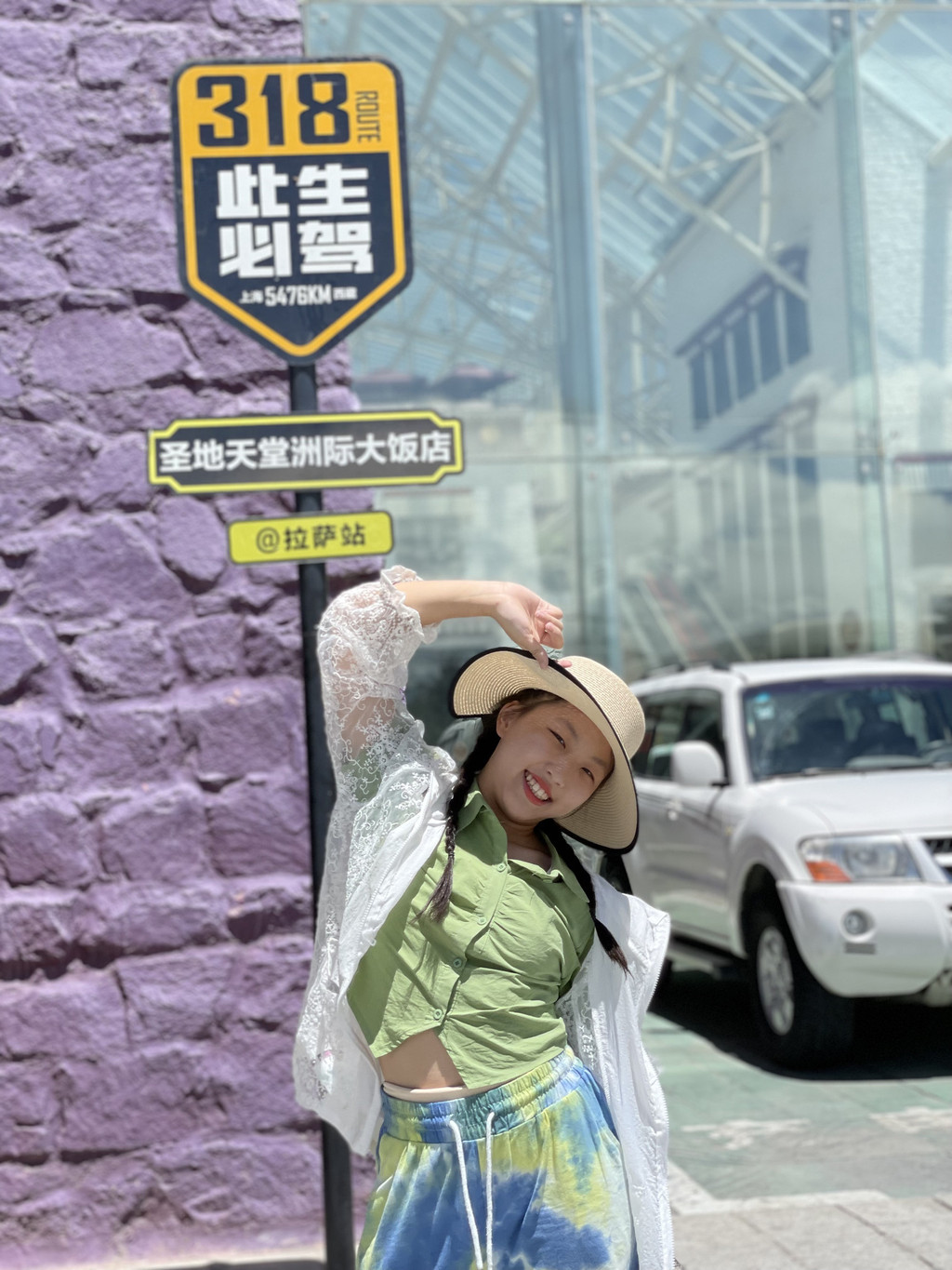 拉萨天堂洲际大饭店坐落于拉萨市区,酒店门旁有一处牌子,上面写有“此生必驾318拉萨站天堂洲际大饭店站”。