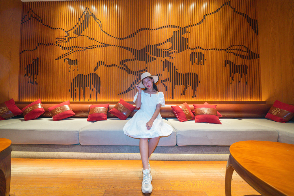通泰大酒店,一层、三层为KTV,装修色调鲜明,带有茶马古道的本色。大漠黄沙,青青草原,都成书写了过往的那一段时光。