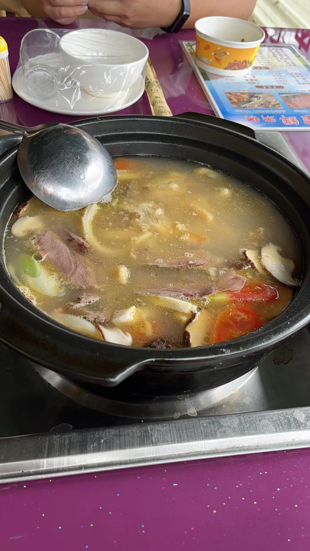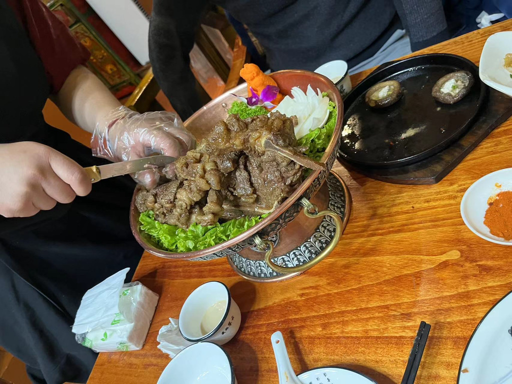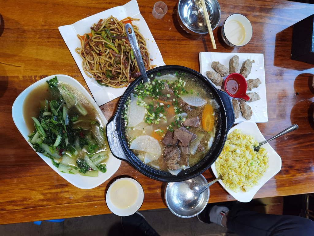 中午在塔公草原旁边的羊肉汤店打卡,4个人310,吃的很满足。老板很热情,吃完了还帮我们分析今天的天气,建议我们去雅拉雪山,因为今天的天气可以看到难得的云绕雅拉。