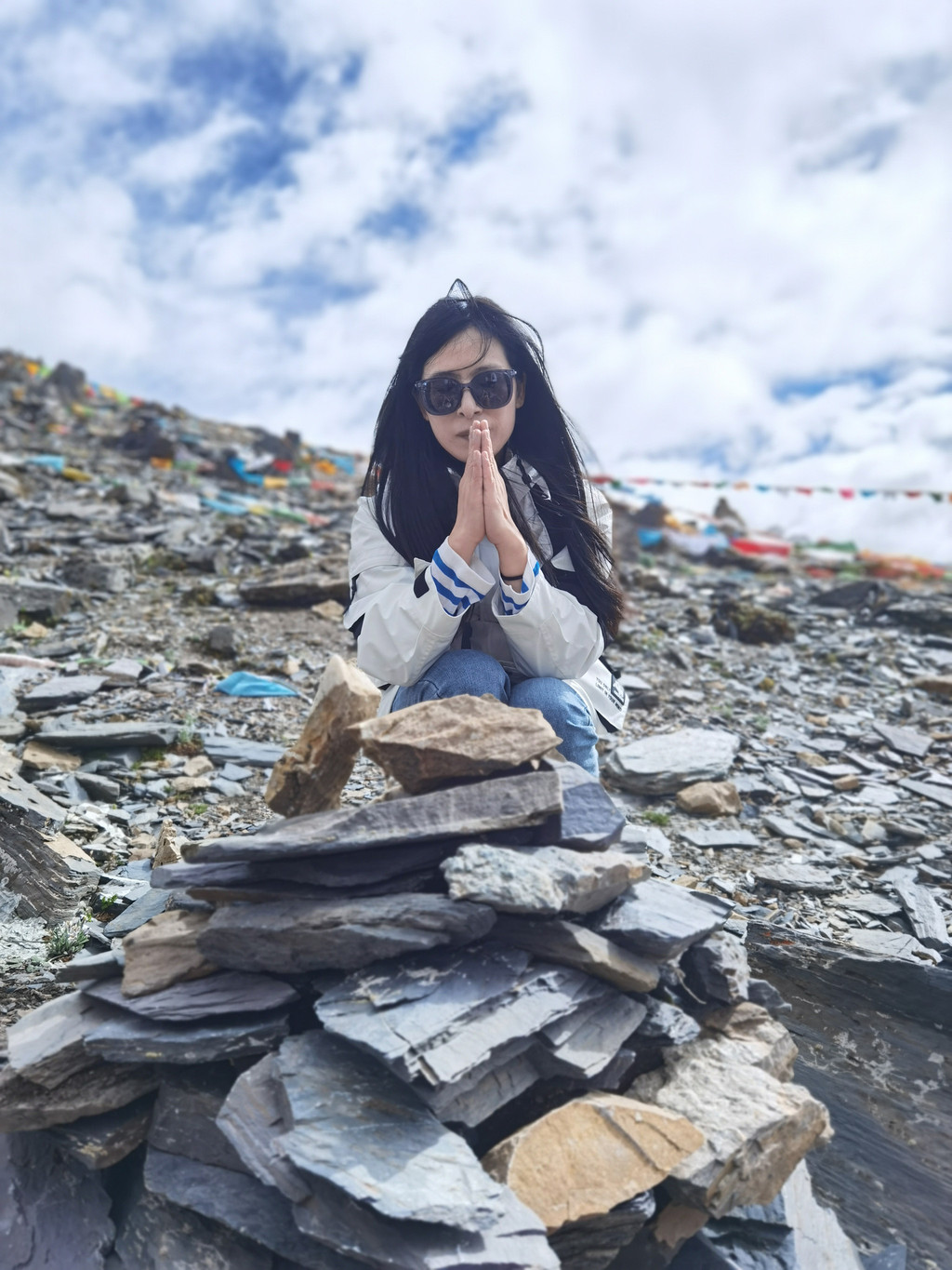 我们沿着盘山小路来到了云绕雅拉的垭口,此情此景,不拜不行……然后……拜完瞬间就开始下冰雹了