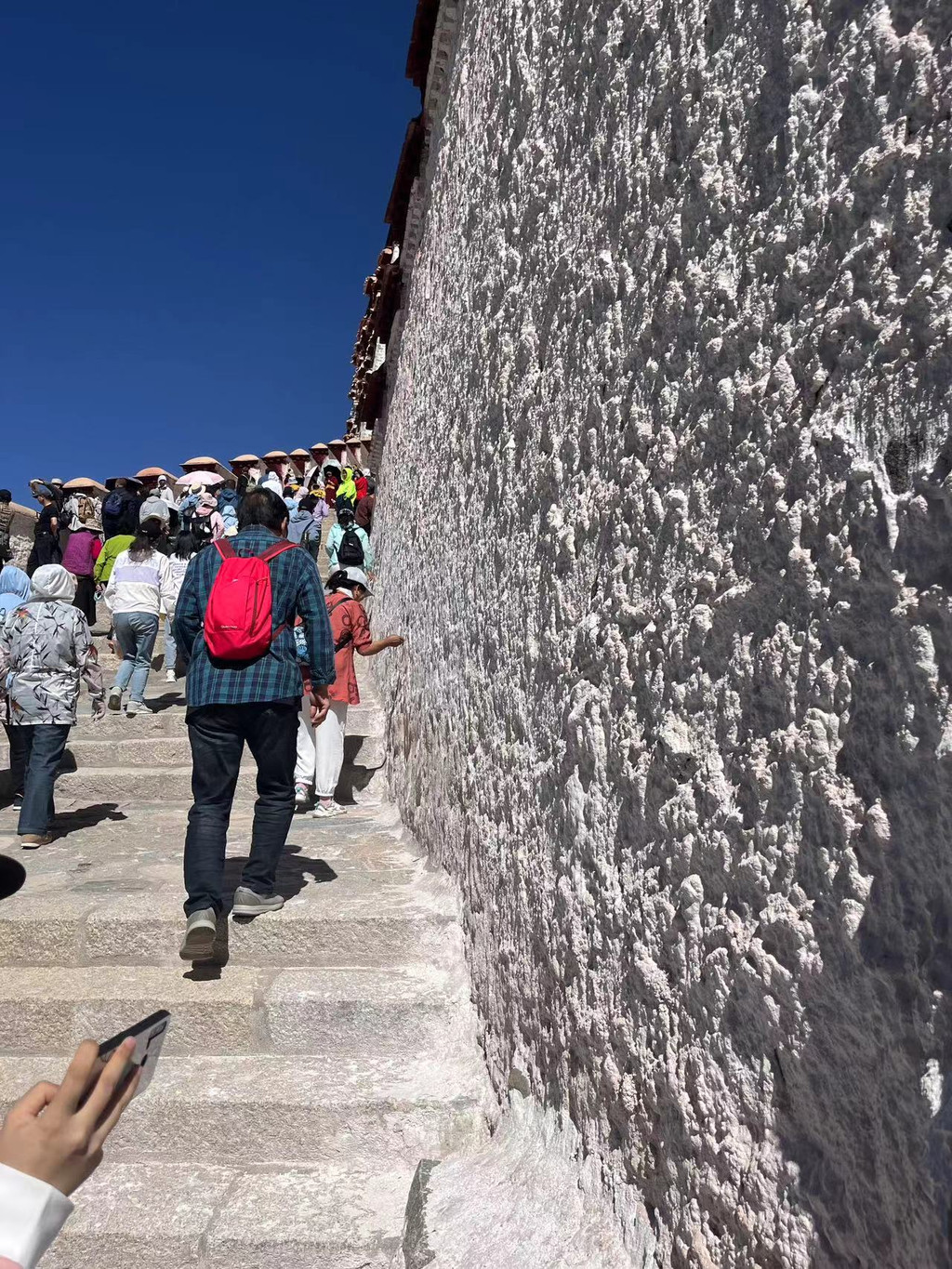其实第一天到拉萨不建议马上去布宫,因为爬上去还是有点累的,据说昨天刚刚有个人爬着爬着高反被抬下来了