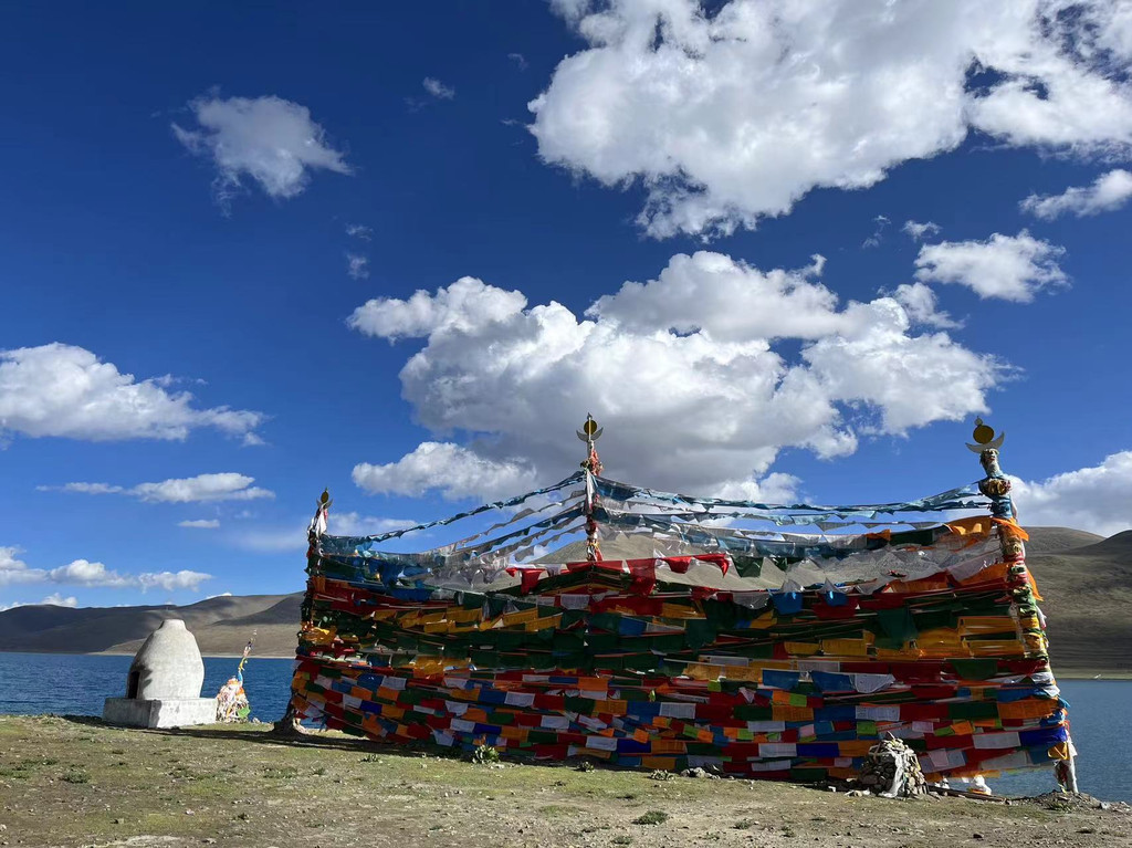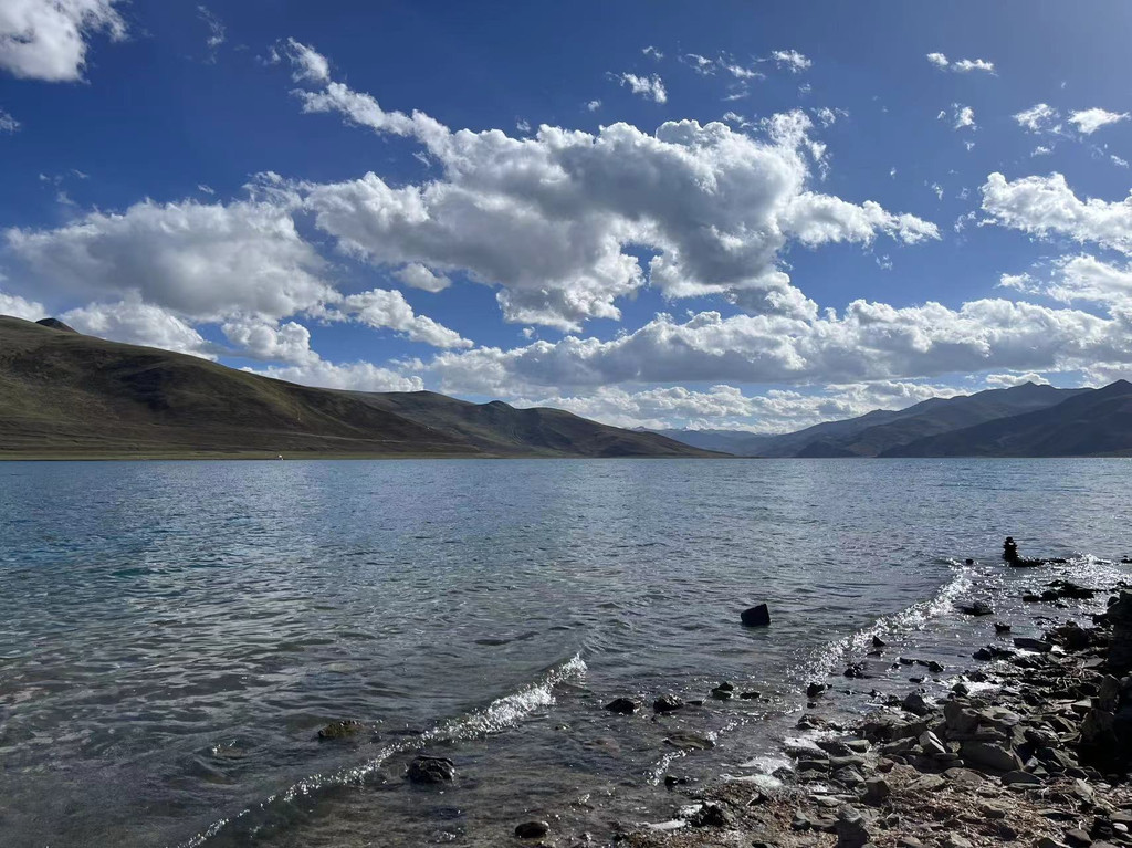 我们一人找了一块石头,堆了一个玛尼堆,风每吹过羊湖一次,高原就替我们祝福大家一次。