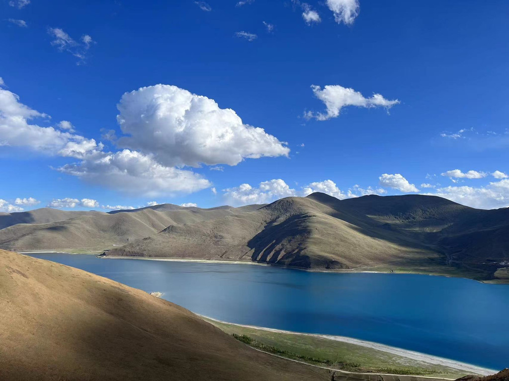 但是到了羊湖,一切的辛劳都得到了回报。这种蓝只在大海见过,谁曾想万里之外的高原也有秋水共长天一色。