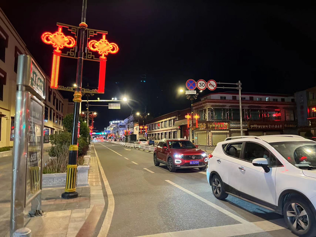 拉萨外围在万达广场附近区域街道较宽,老城区景点集中,路也不大