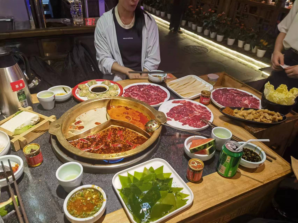 第一顿成都的火锅,巴蜀大将,一边吃一边等租车送上门~