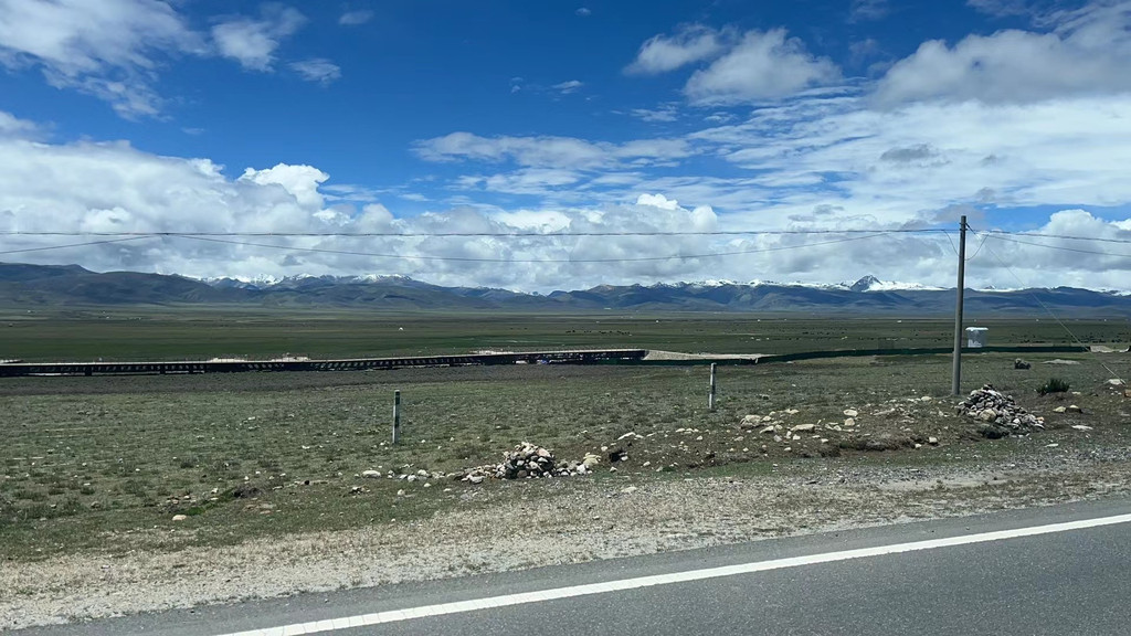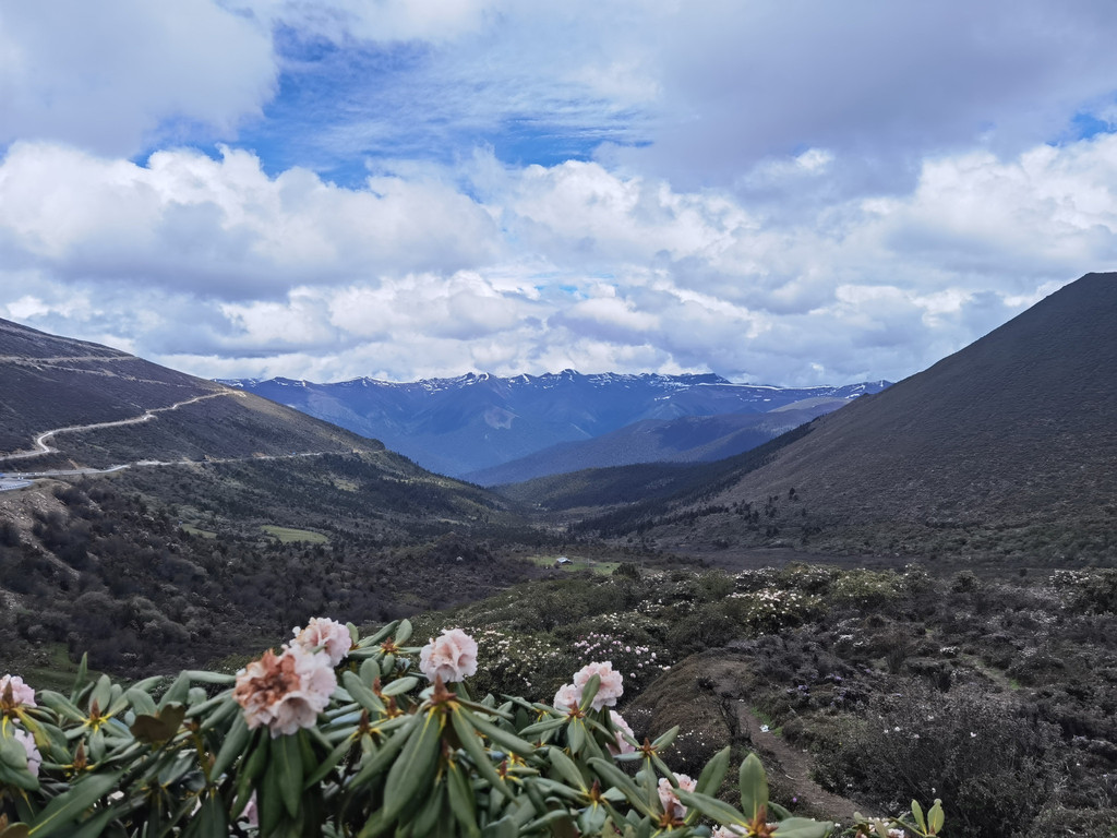 还是不远处的路边,野花野草,一望无际的河谷,层峦叠嶂的雪山,属于高原的宁静和俊美