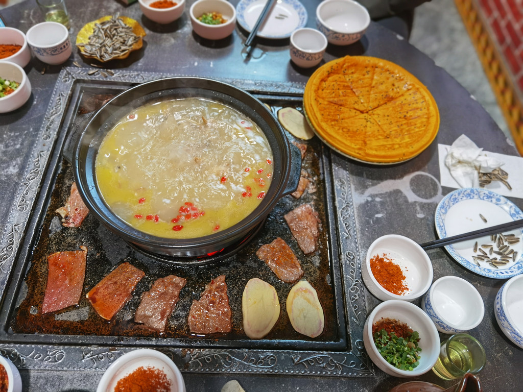 接着说说沿途的吃饭,我们一路跟着排行榜吃,一路尽是惊喜,不吃辣的浙江人倒是也如鱼得水,甜茶、荞麦饼、各种鸡、各种牛羊,本来以为是苦行之旅,变成了美食之旅,出发之前准备的方便面、自热米饭要不是主动在雪水溪流边加餐还真是用不上。