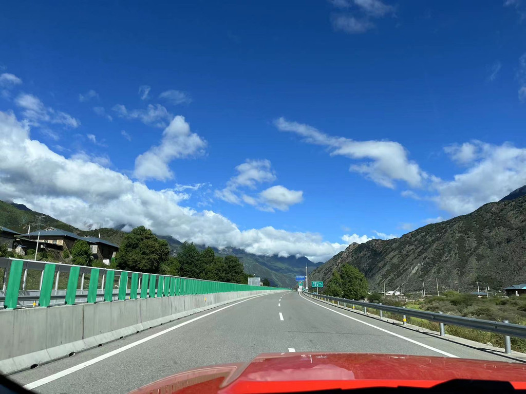 今天的林拉高速是蓝天白云的林拉高速