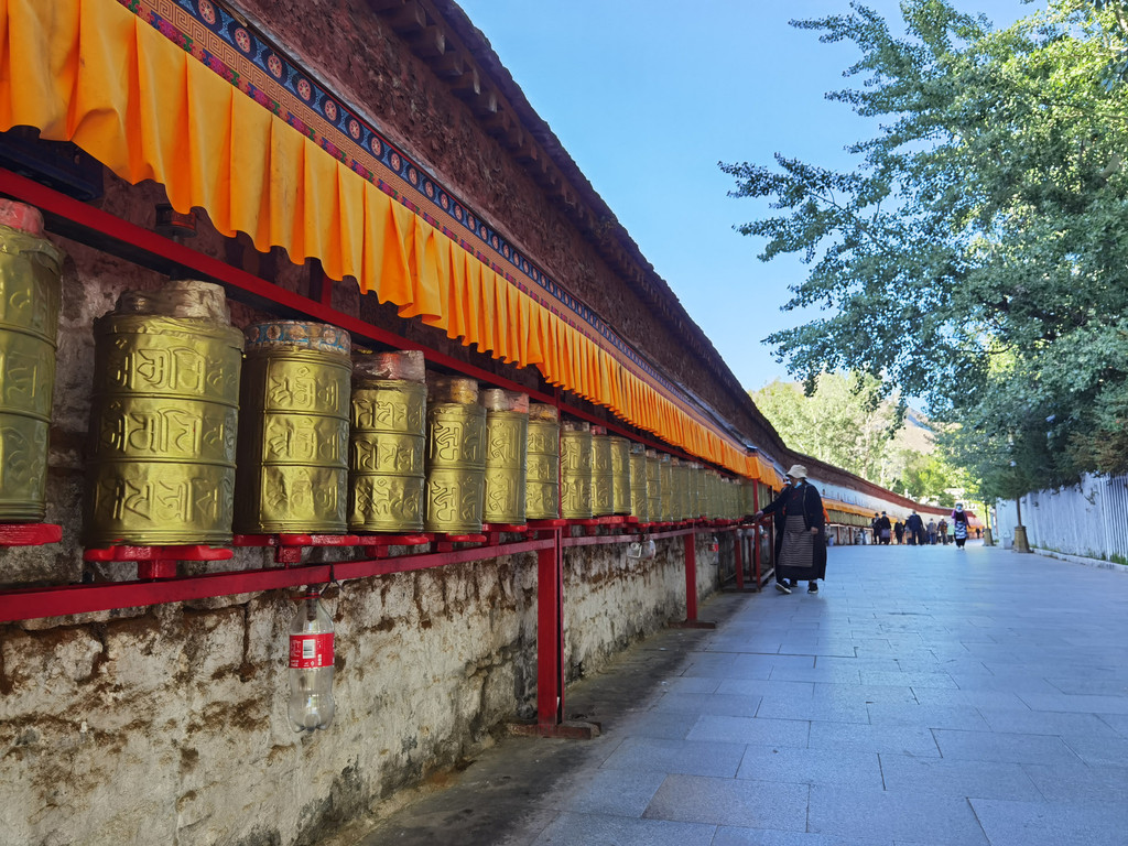 布宫广场的周围有一圈神圣的转经筒,转一圈,洗净心中杂念。