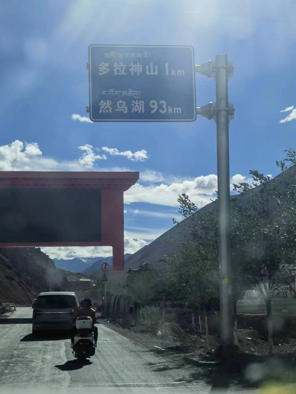 这里要特别说一下我们的一个插曲,本想加油,看见排队很长,一瞄续航里程还有300多公里,就想着等下个服务区再加。结果下个服务区没油了,再下个服务区又在检修,下了高速318沿线又是百来公里才有一个加油站,最后我们邮箱见底才将将赶到墨竹工卡加油站,差点要下来推车。小伙伴一定要保持预留量,以免不必要的麻烦。