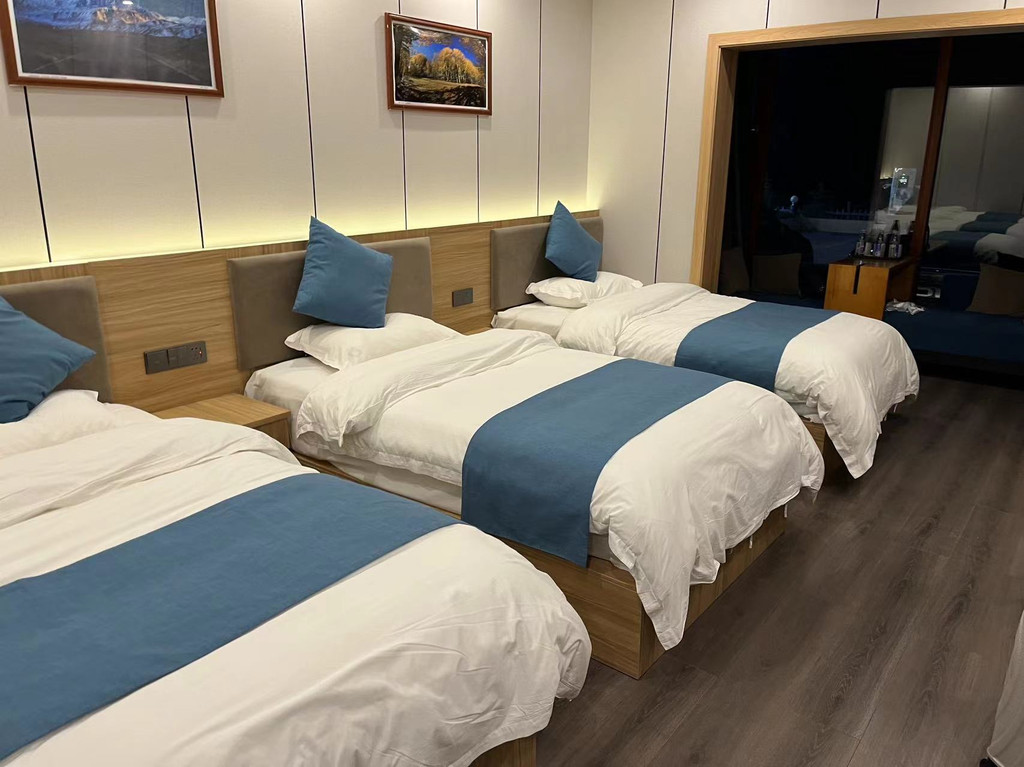 入住雅安的酒店,三人床,同行的小伙伴呼噜惊人