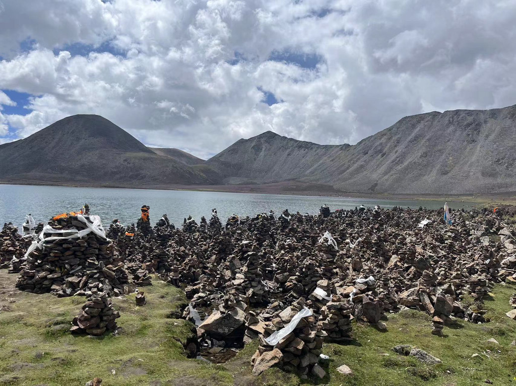 据说财神在湖边洒下了无数的祝愿和财富,这里也是玛尼堆最多的地方了